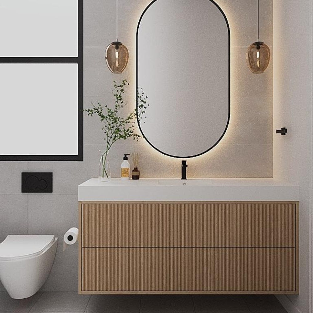 Custom Oak Wood veneer Vanity Floating , Floating 30 inches , Fluted Oak , Crown Oak , Solid , Modern Vanity