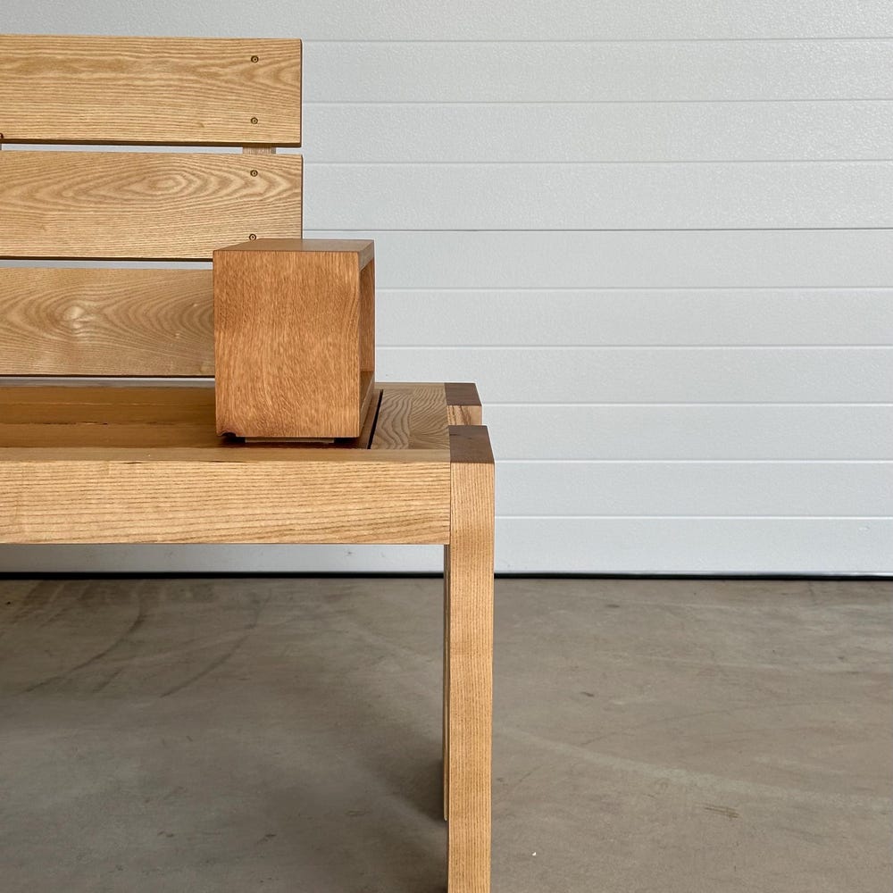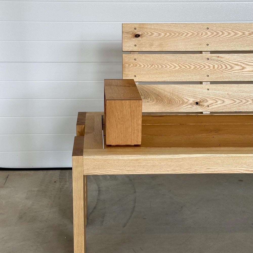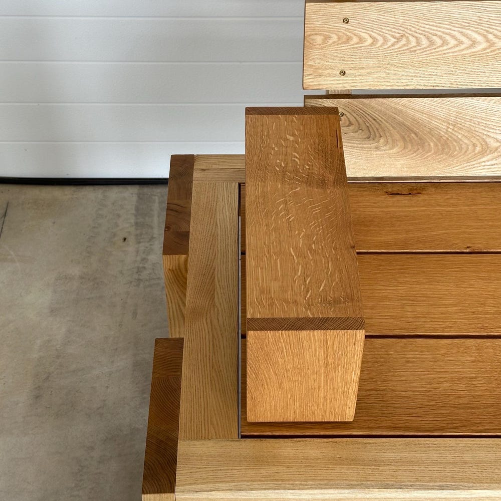 A take on our patio sectionals, a style we’ve crafted many times. This patio couch is made with white oak seats and armrests, while the frame and back are built from sassafras. Perfect for creating a welcoming outdoor space to gather and relax.