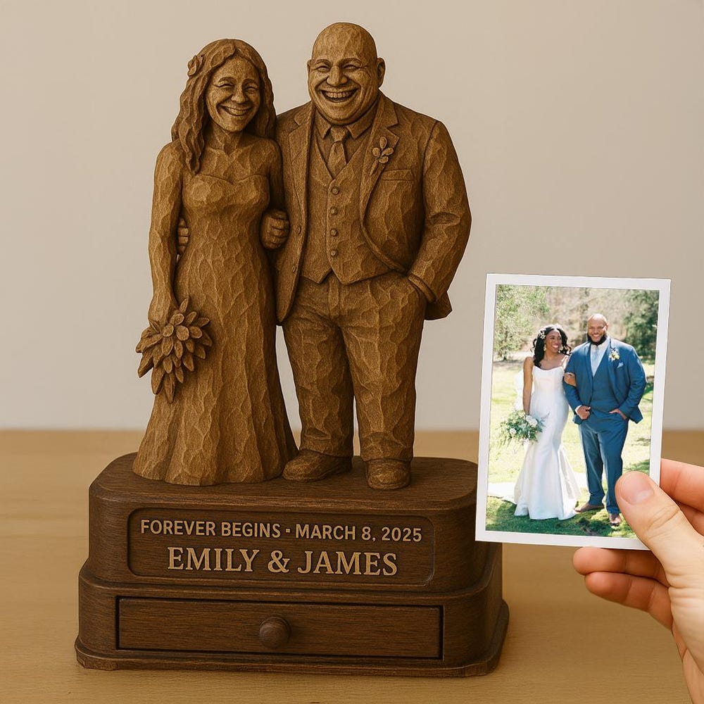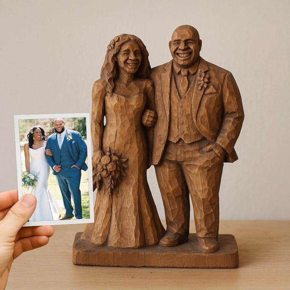 Turn your most cherished moment into an everlasting piece of art. This exquisite wooden sculpture, custom-carved from your photo, is the perfect way to honor your special day. Whether gifted at weddings or displayed at home, this one-of-a-kind piece captures the essence of your bond with natural elegance and heartfelt detail. A perfect custom gift for couples, anniversaries, weddings, or newlyweds looking to preserve their memory in beautifully carved natural wood.