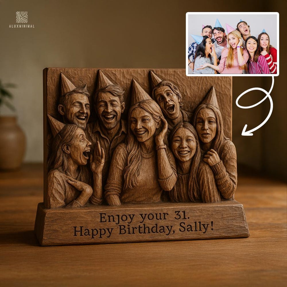 Turn a cherished photo into a stunning hand-carved wooden relief — a piece of art that captures love, connection, and memory in every chisel mark. Whether it’s a family moment, wedding memory, or celebration of life, this personalized wood sculpture brings timeless warmth into your space.