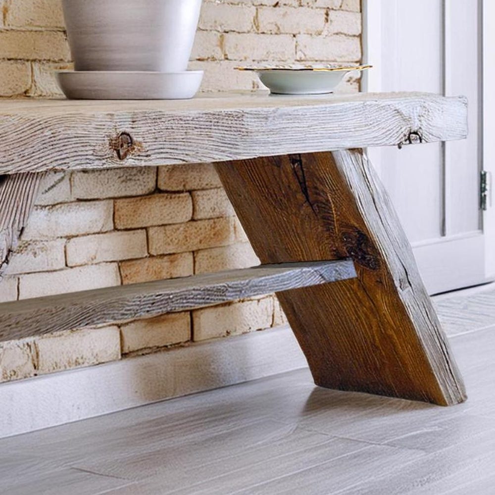 Live Edge Detail: Features a beautiful live edge, showcasing the natural charm of reclaimed wood.