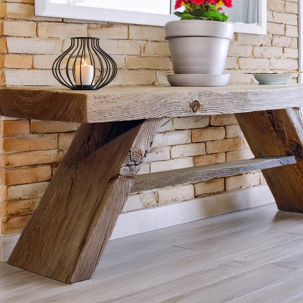 Custom Handmade Rustic console table Farmhouse Style Live Edge shelf Reclaimed Handcrafted solid Wood Country Style Entryway Hallway Dresser – made of oak wood –