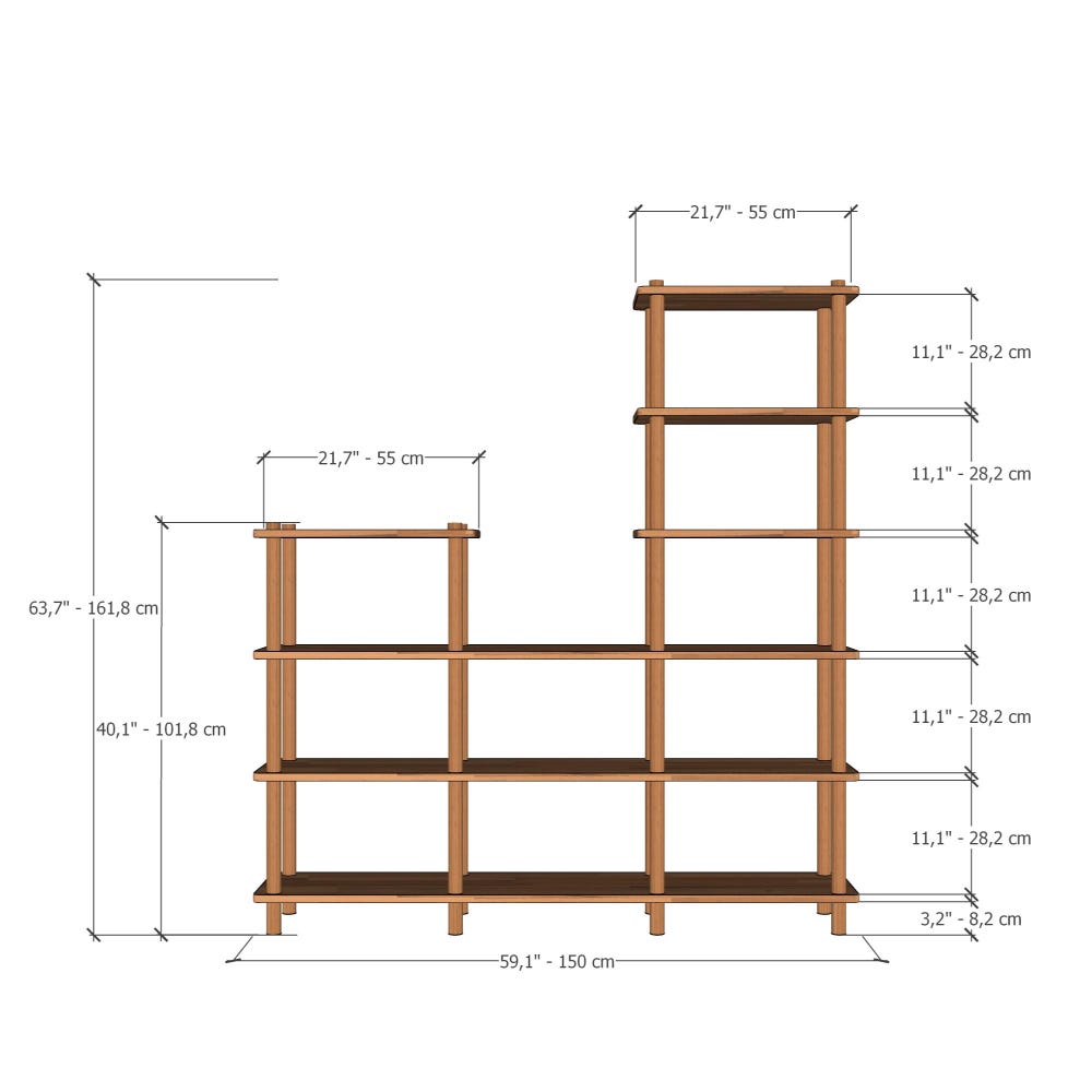 Our products are fully customizable. You can modify the heights, widths, and shelf gaps according to your intended use. You can increase or decrease the number of shelves as well. We would be happy to assist you with this.