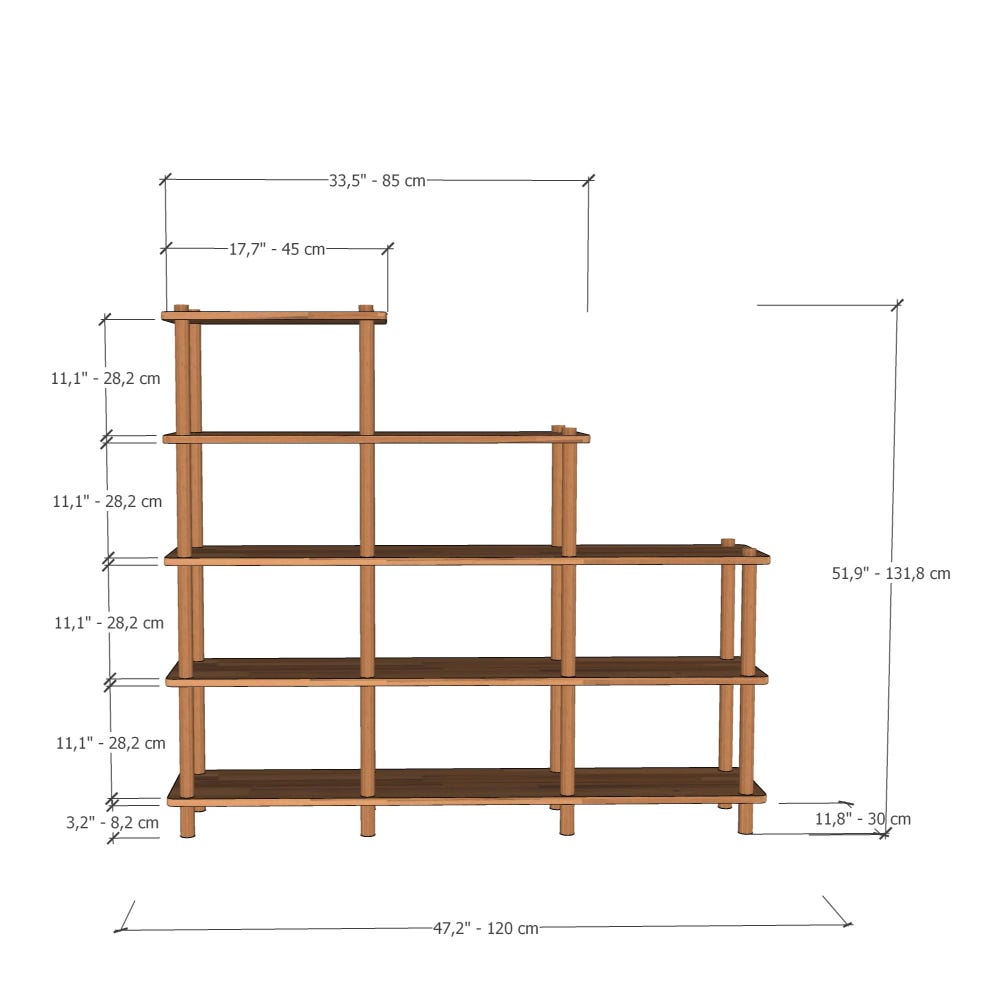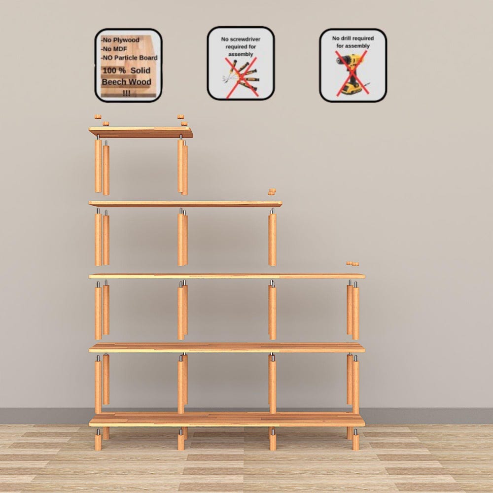 Custom Size Solid Wood Ladder Shape Bookcase, Solid Beech Wood Object Display, Livingston Room Bookshelf, Custom Desing Shelving Units
