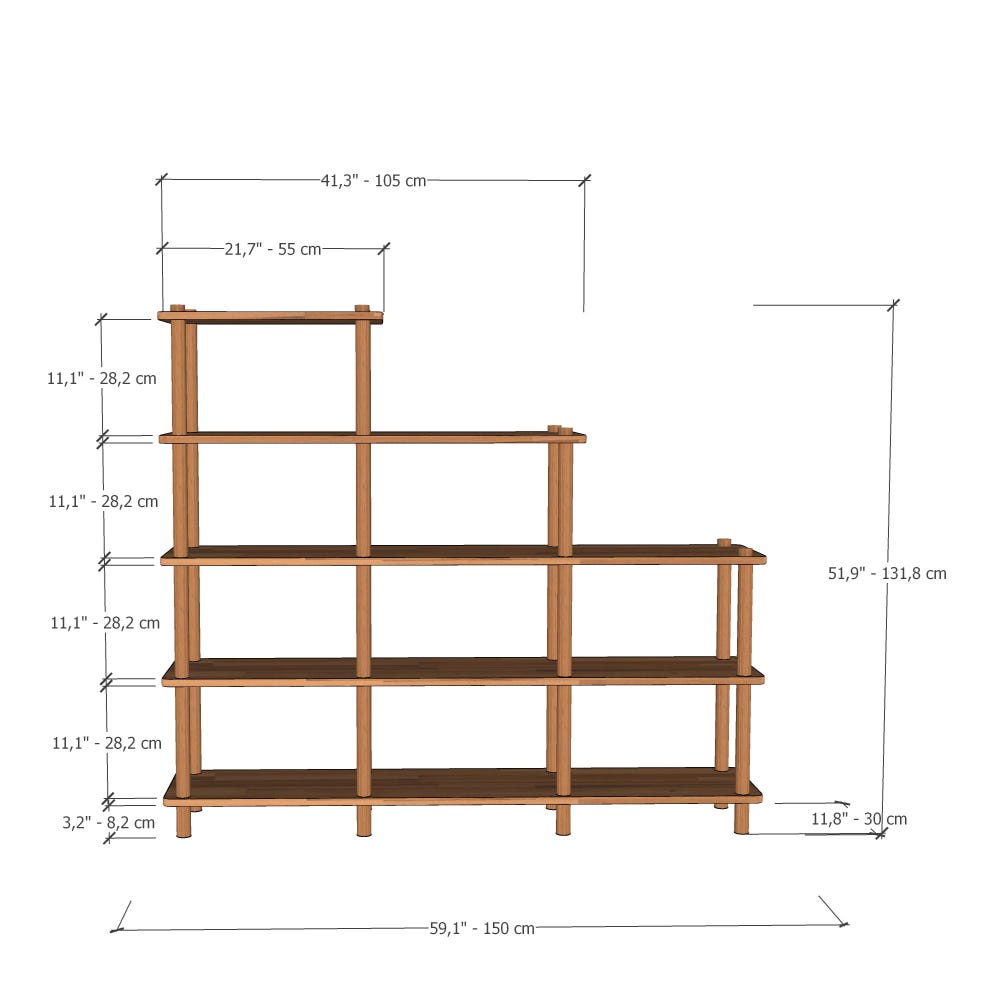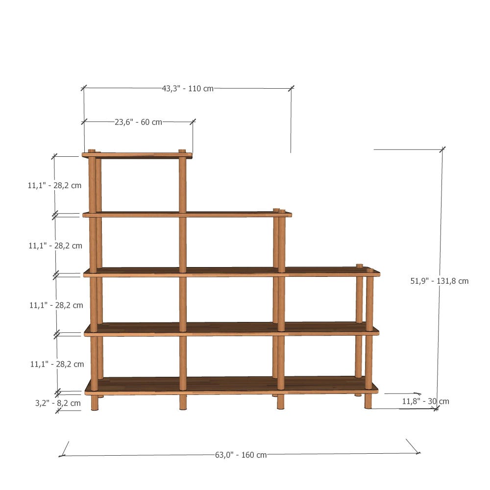 Our products are fully customizable. You can modify the heights, widths, and shelf gaps according to your intended use. You can increase or decrease the number of shelves as well. We would be happy to assist you with this.