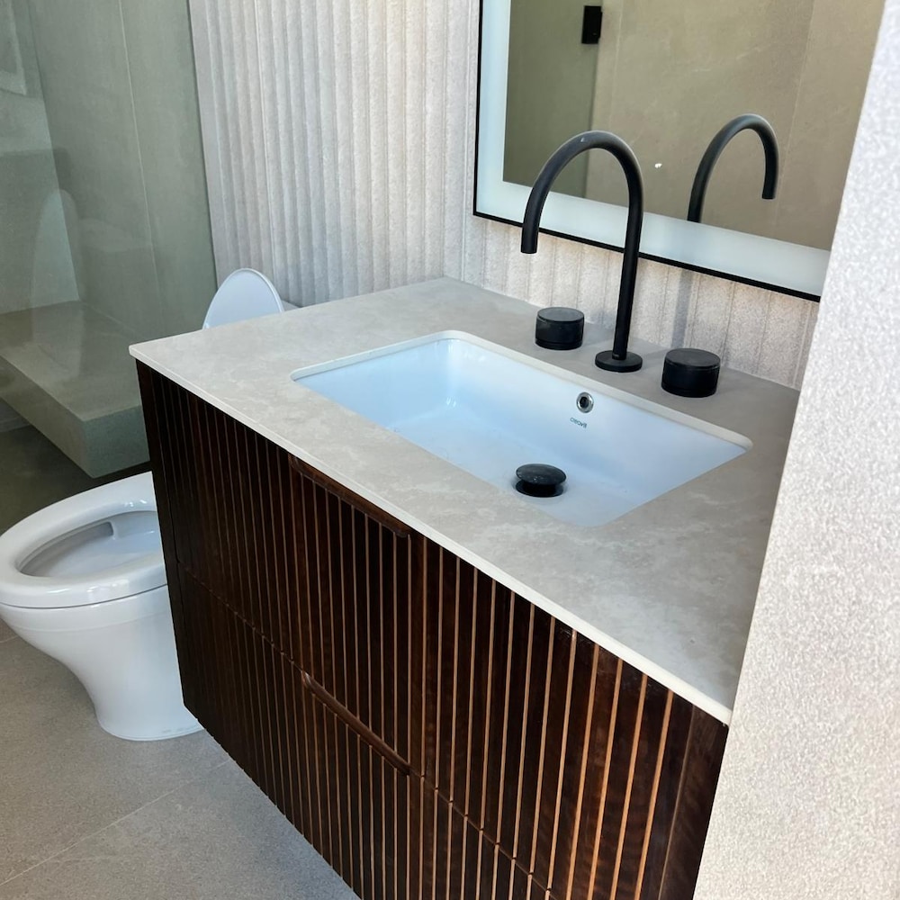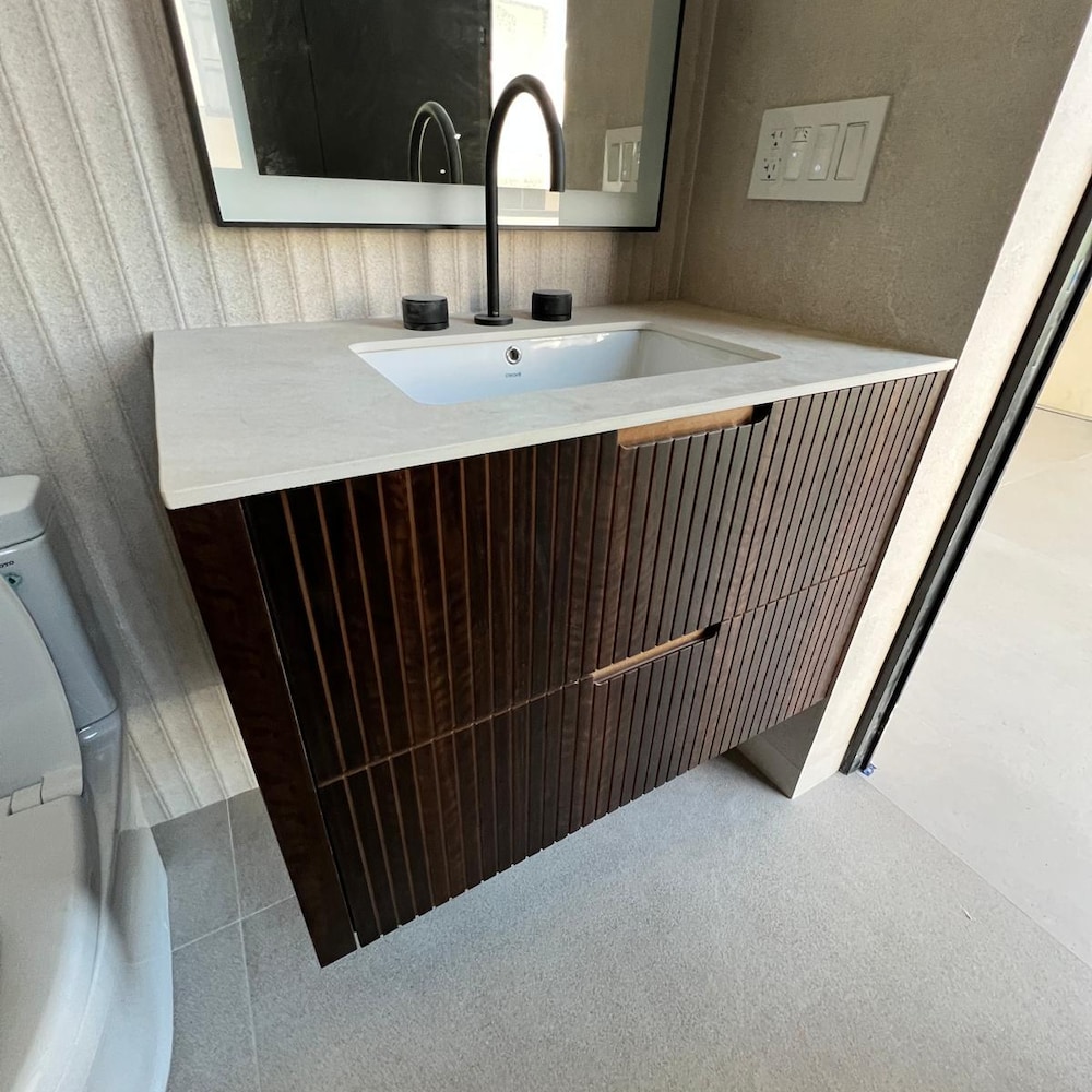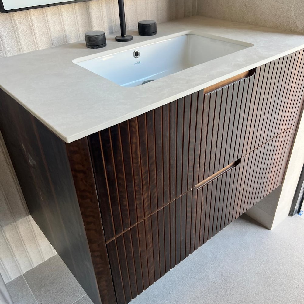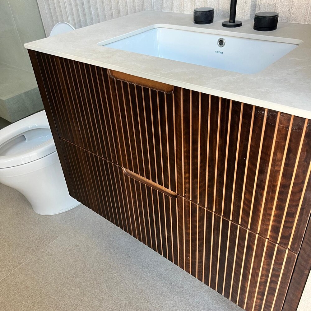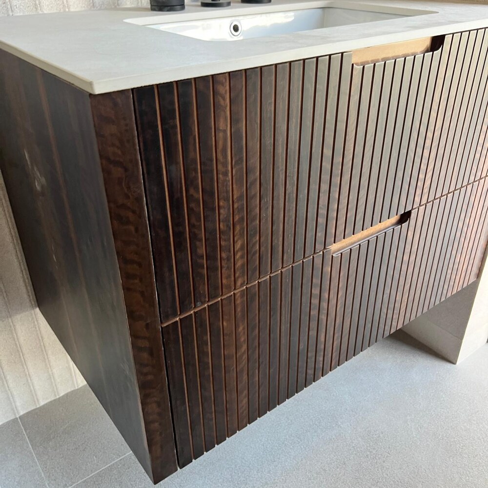 Custom Smoaky Oak Wood veneer Vanity Floating , Floating 32 inches , Fluted smoaky Oak , Crown Oak , Solid , Modern Vanity , with grooves