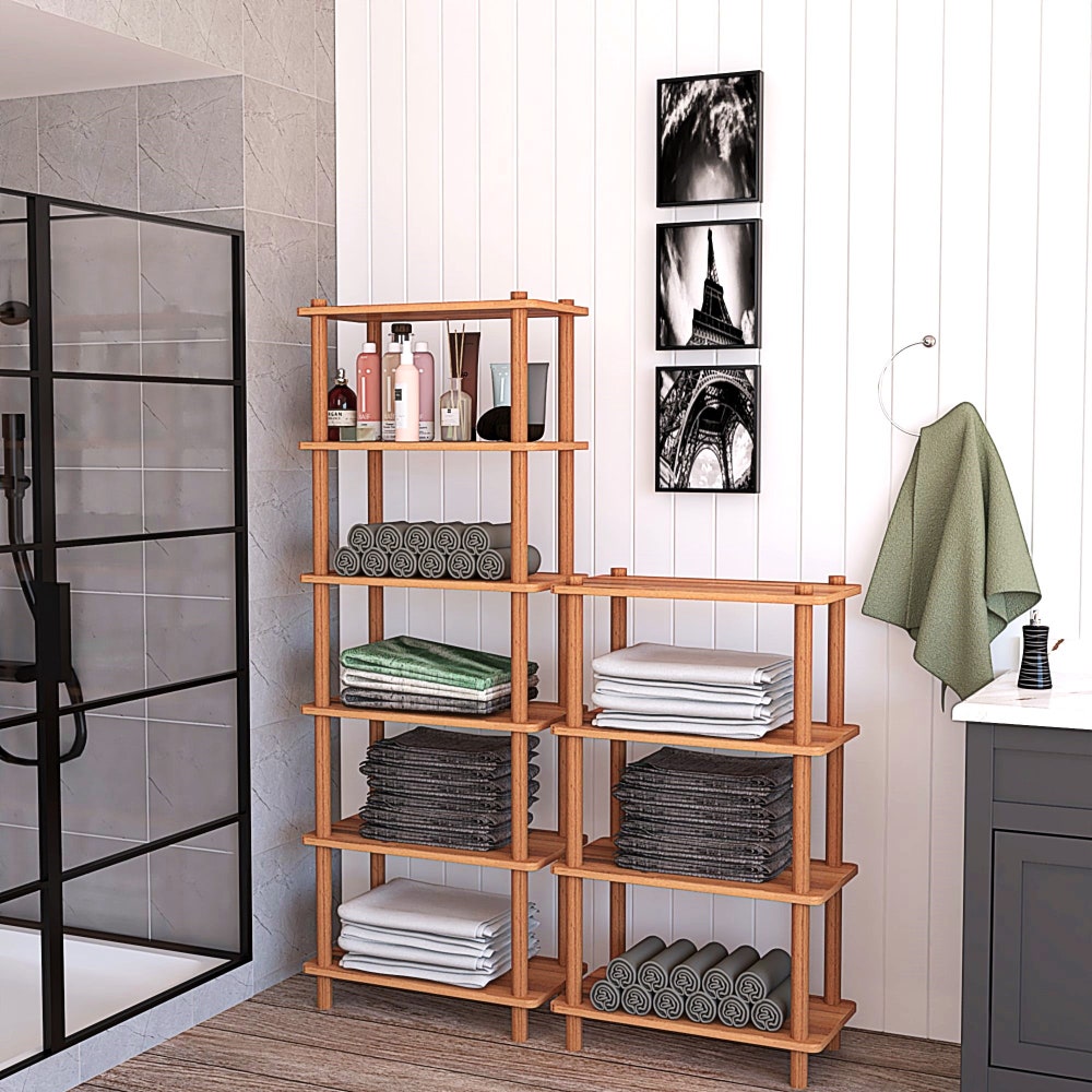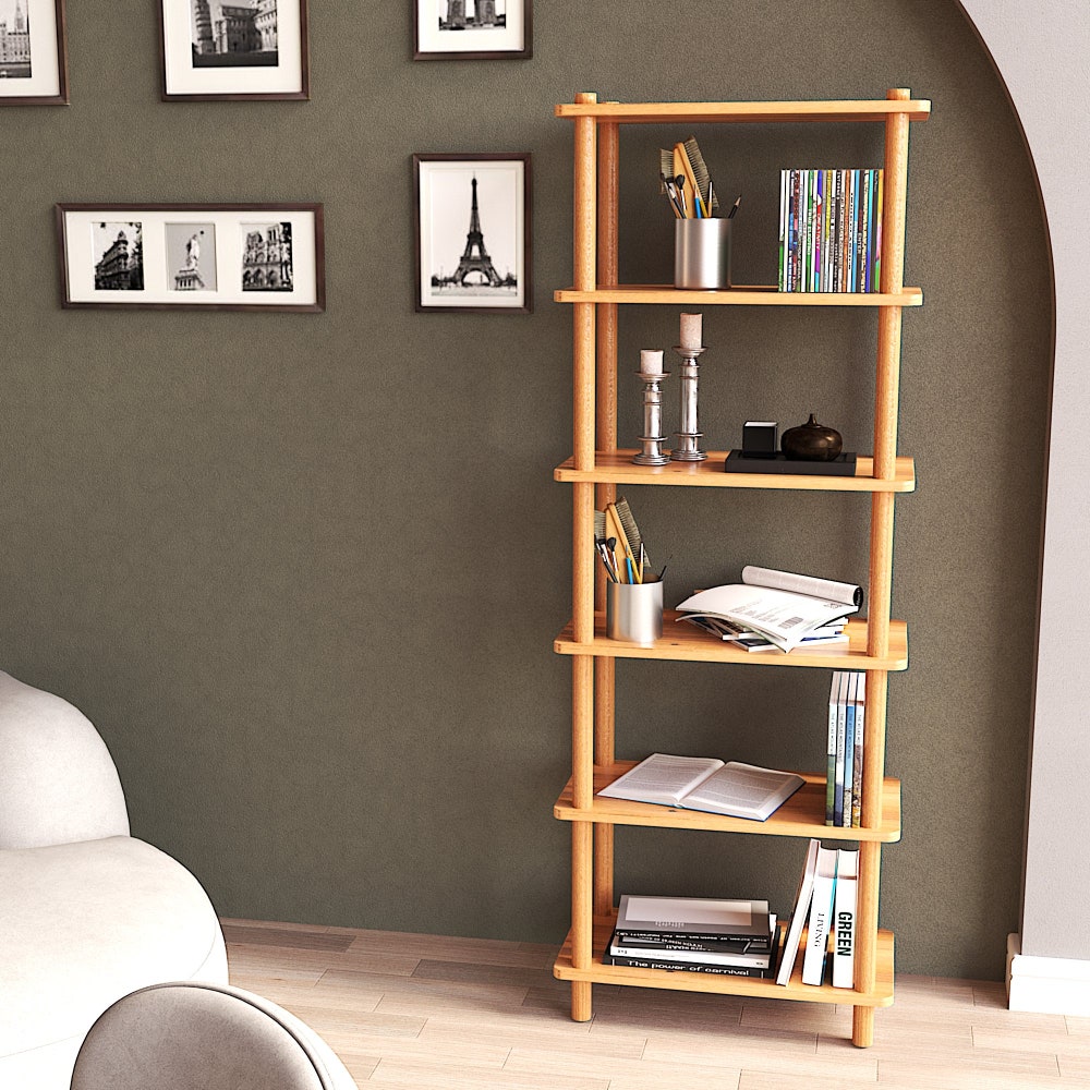 These unique wooden shelves are a perfect furniture piece that combines both functionality and elegance. Crafted from high-quality wood, this shelving system offers quantity and style in one. It provides an ideal space for storage in your bathroom and kitchen, as well as an area in your living room to showcase your books or organize your other decorative items. With its design featuring different shelf dimensions, it ensures easy access to your books while adding a modern touch to your room. The rounded corners and finely crafted details offer a perfect experience in terms of both aesthetics and safety. Serving as an elegant addition, it also provides ample storage space.