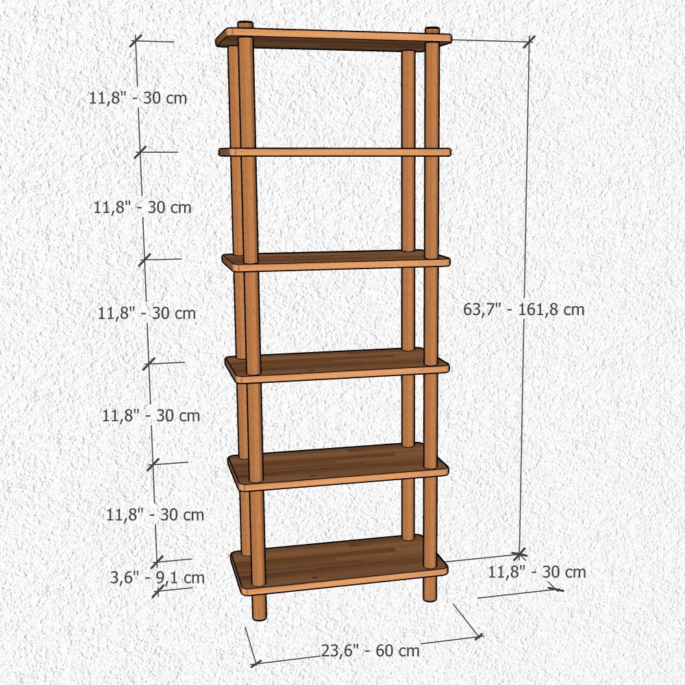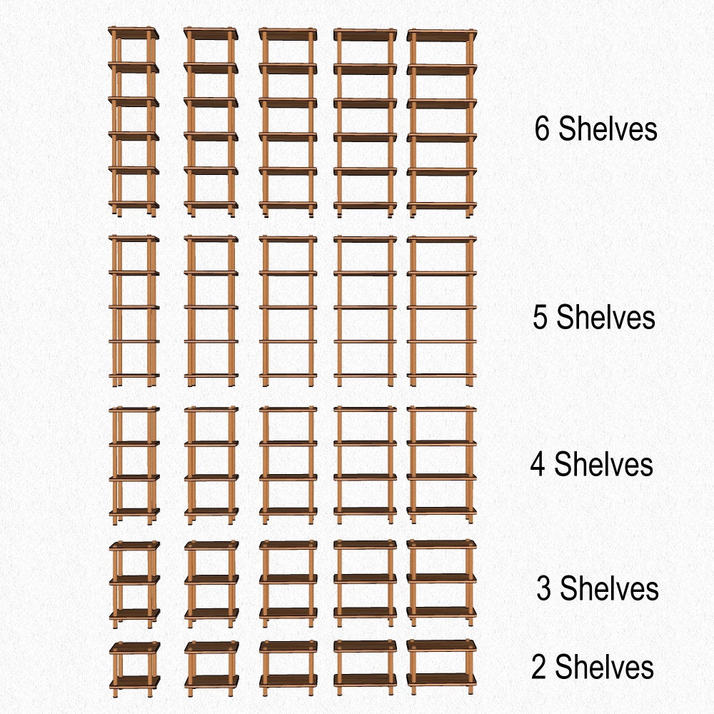 | Shelves | 2 Shelves – H:16.5”, 3 Shelves – H:28.3”, 4 Shelves – H:40.1”, 5 Shelves – H:51.9”, 6 Shelves – H:63.7” |