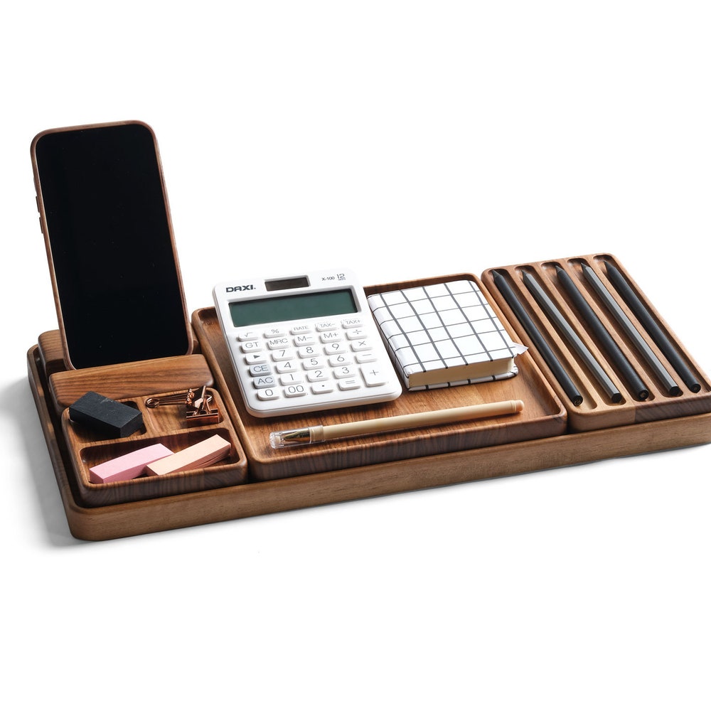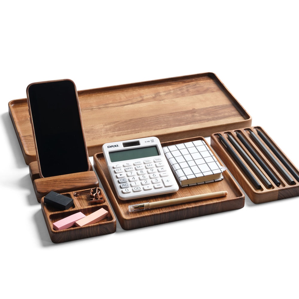 Gustav Wooden Desk Organizer Set – Minimalist Handmade Beech Wood Desk Tray for Modern Spaces