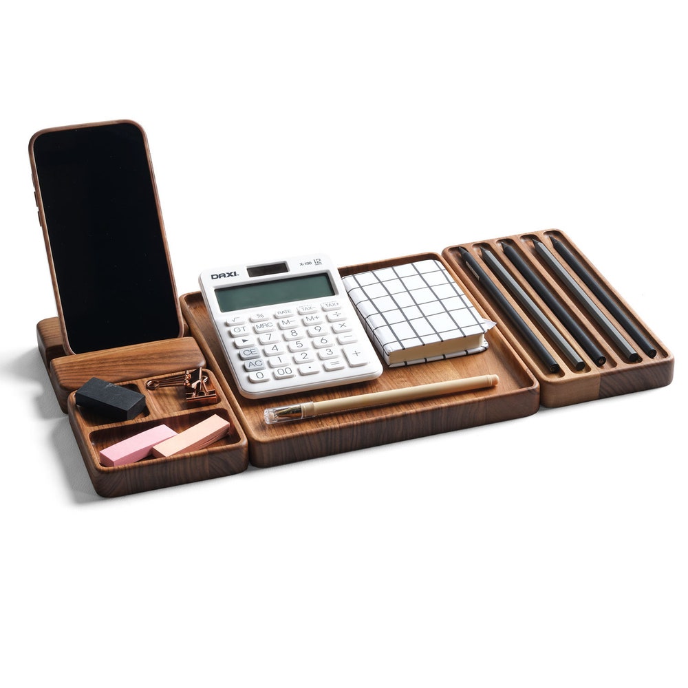 Custom Wood Desk Organizer Set – Personalized Office Tray with Phone Stand – Wooden Tray – Minimalist Gift for Him or Her