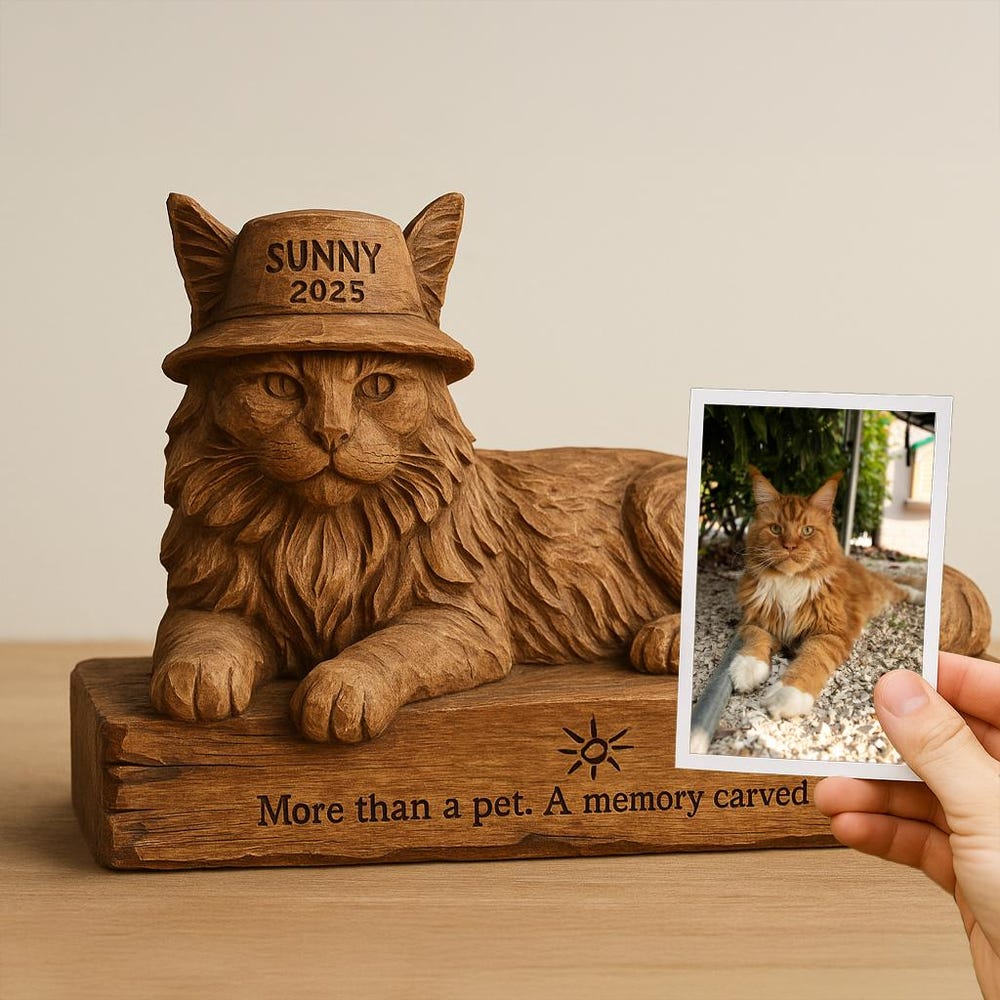 Custom Wooden Cat Memorial Statue – Personalized Pet Portrait Gift – Handcrafted Dog Remembrance Art – Pet Loss Keepsake Sculpture