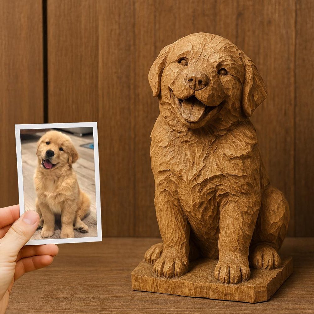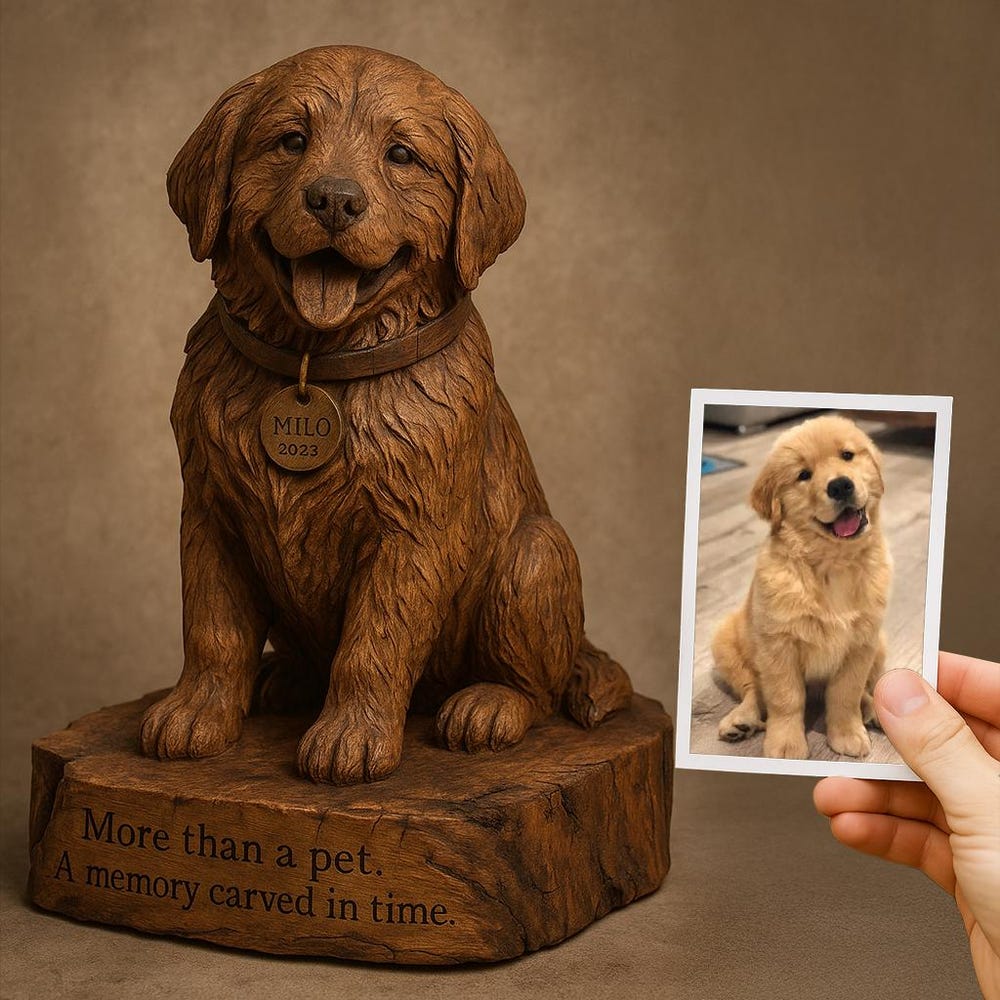 Custom Wooden Dog Memorial – Pet Portrait Figurine from Photo – Personalized Sculpture Gift for Pet Loss Tribute