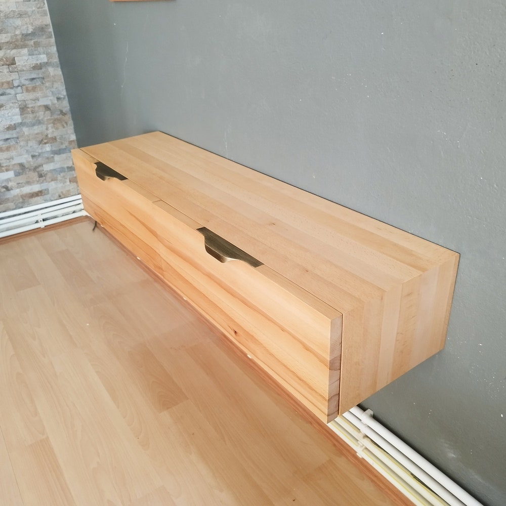 Customizable Floating Wooden Tv Stand, Wooden Media Console, Wooden Console Tv Unit, Wall Mounted Solid Wood Media Unit