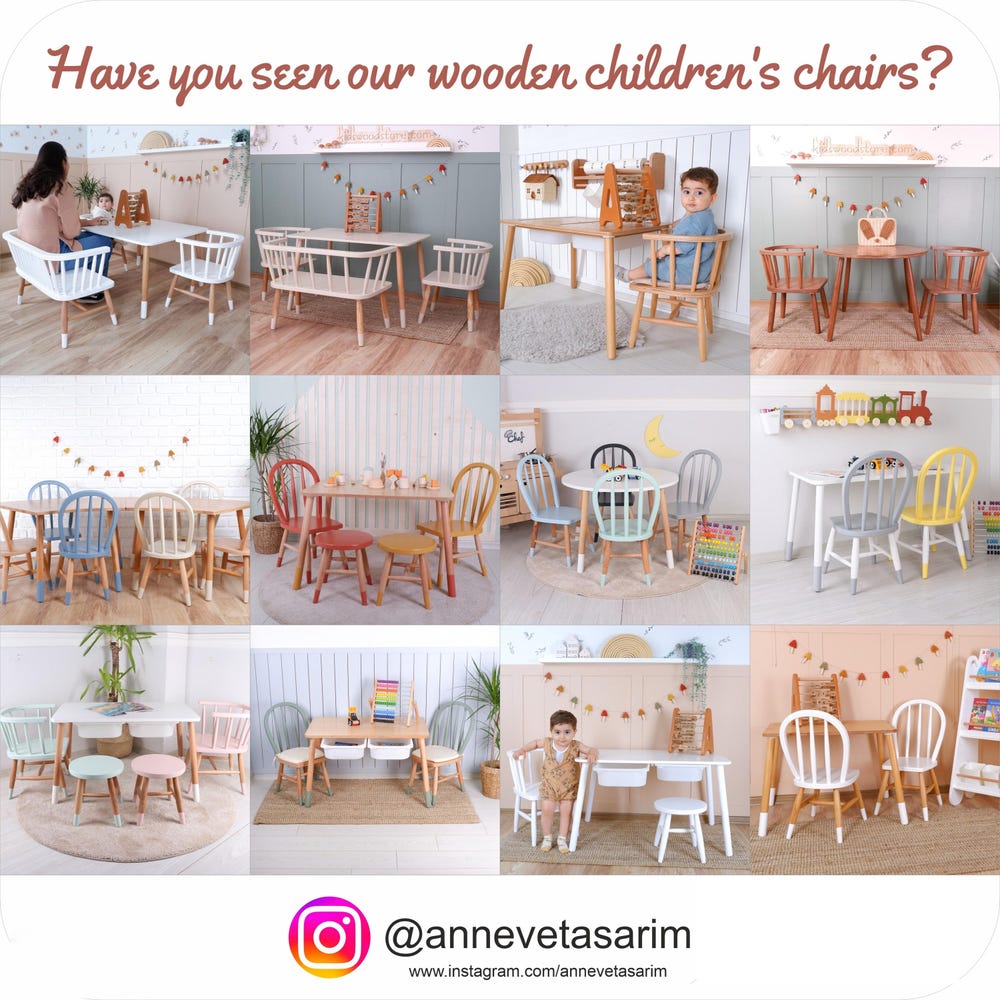 Customizable Montessori Wooden Kids Table, Windsor Chair & Bench – | Special production and offers are made for commercial areas.