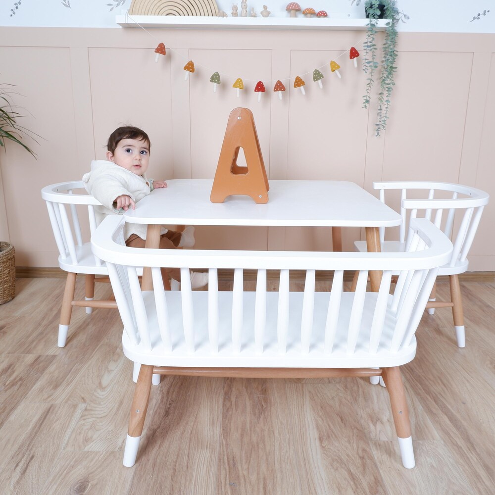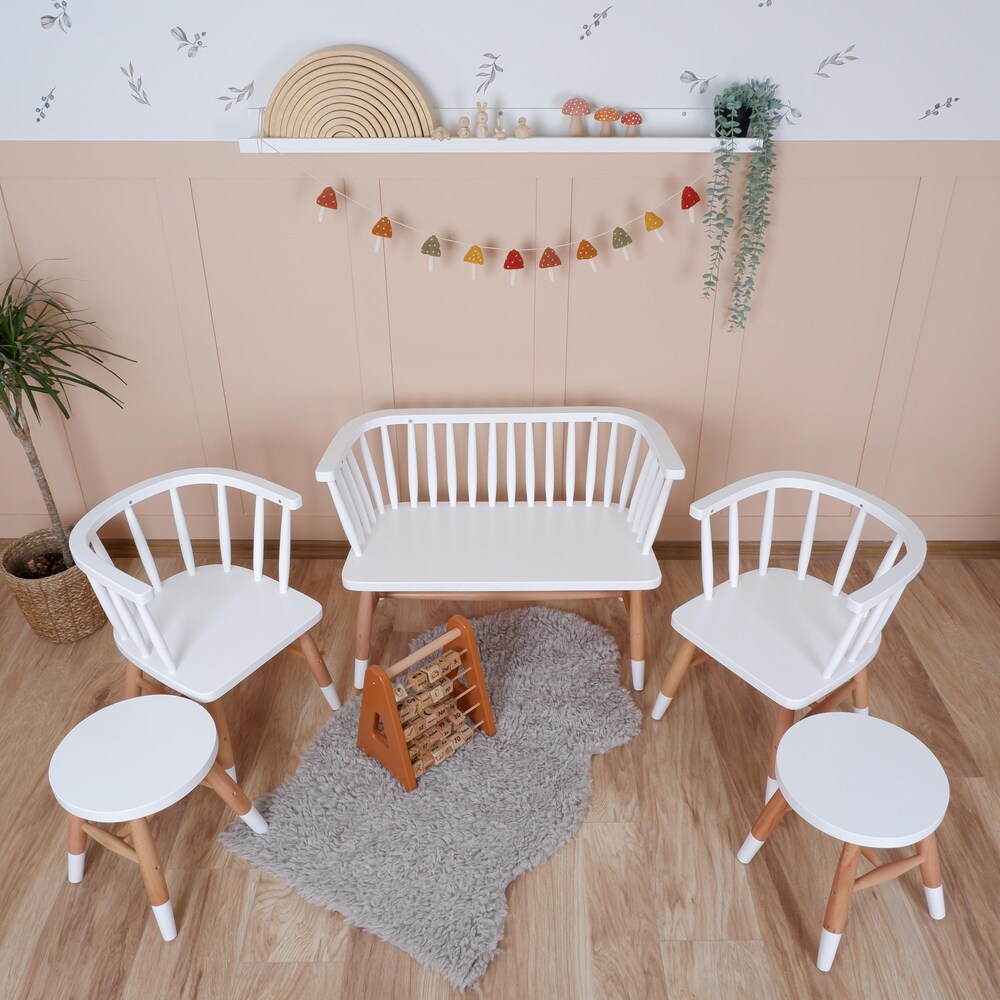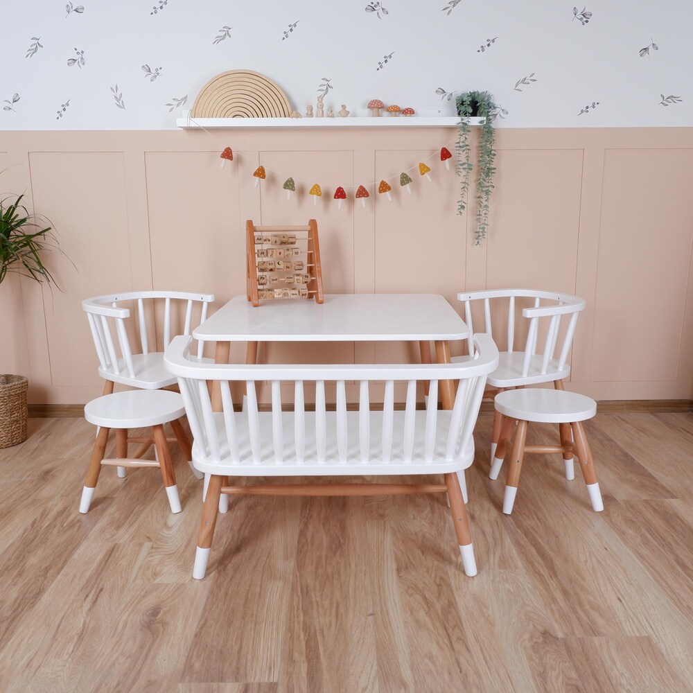 Introduce elegance and fun into your child’s space with our handcrafted Wooden Kids Table, Windsor Chair & Bench Set. This charming set is the perfect addition to any playroom or Montessori learning area, creating a cozy spot for art, play, and learning.