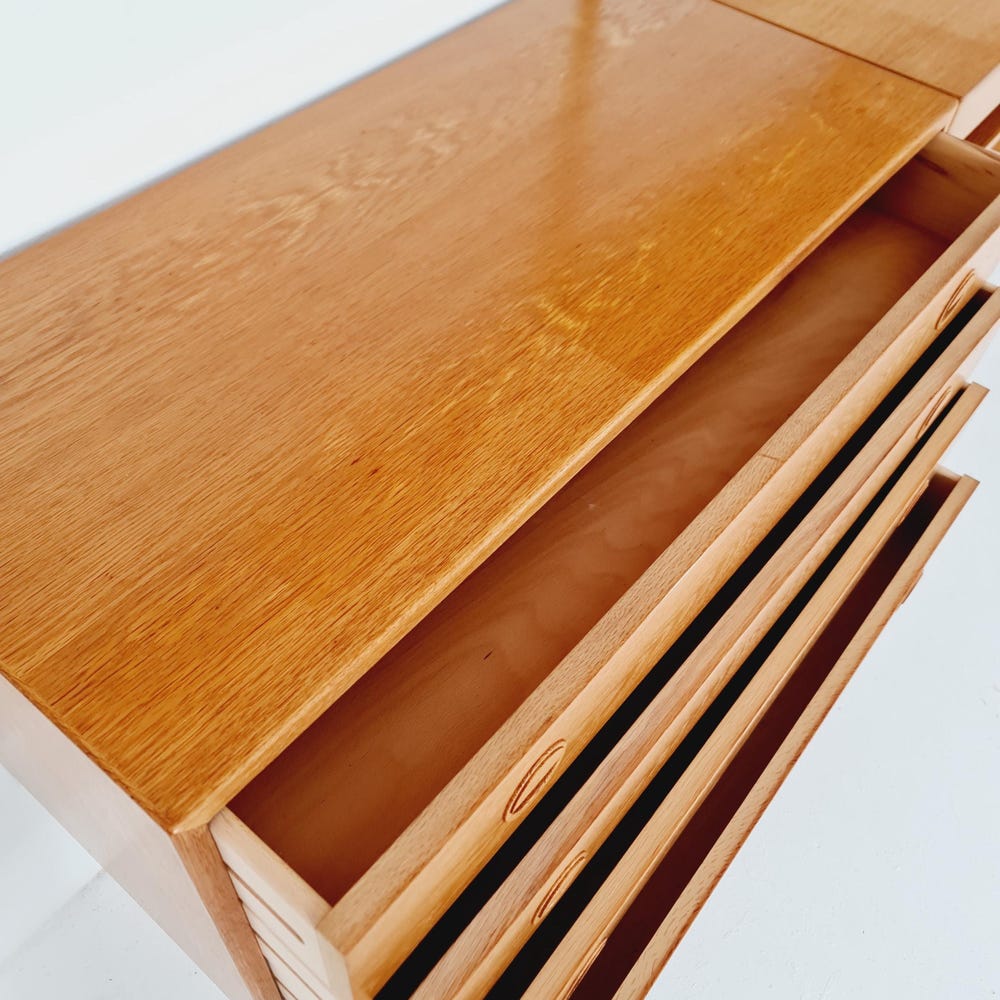 Danish modern modular Oak shelving system by Hansen & Guldborg Mobler, Denmark, 1960s Danish design by H.G. Møbler Design year: 1960s Dimensions: 41D x 270W x 220H cm It is in mint condition, however, as with all vintage items some minor wear marks should be expected. Please enquire for prices in your country before buying. […]