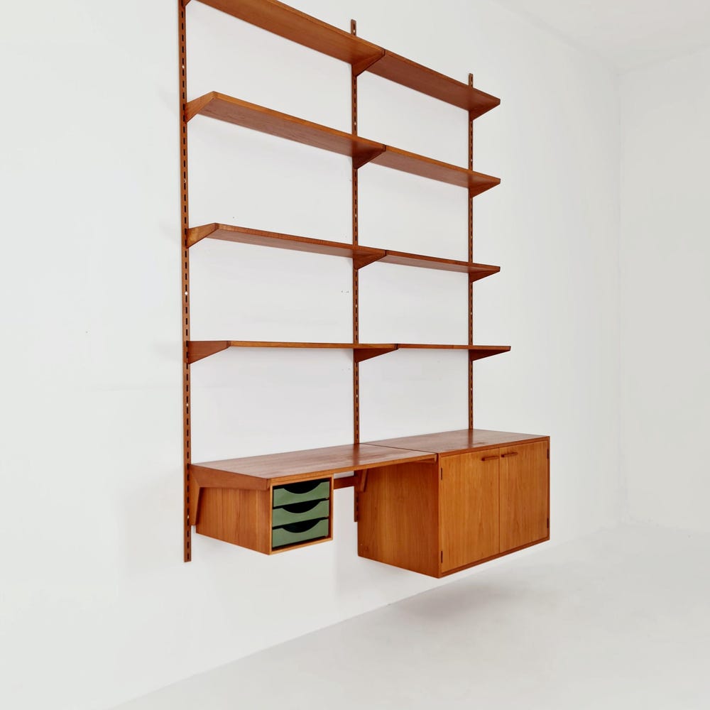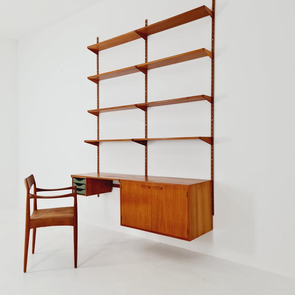 Danish modern modular teak shelving system by Kai kristansen for FH Möbel, Denmark, 1960s