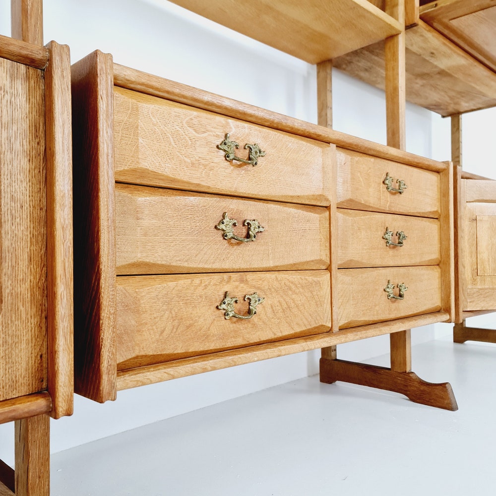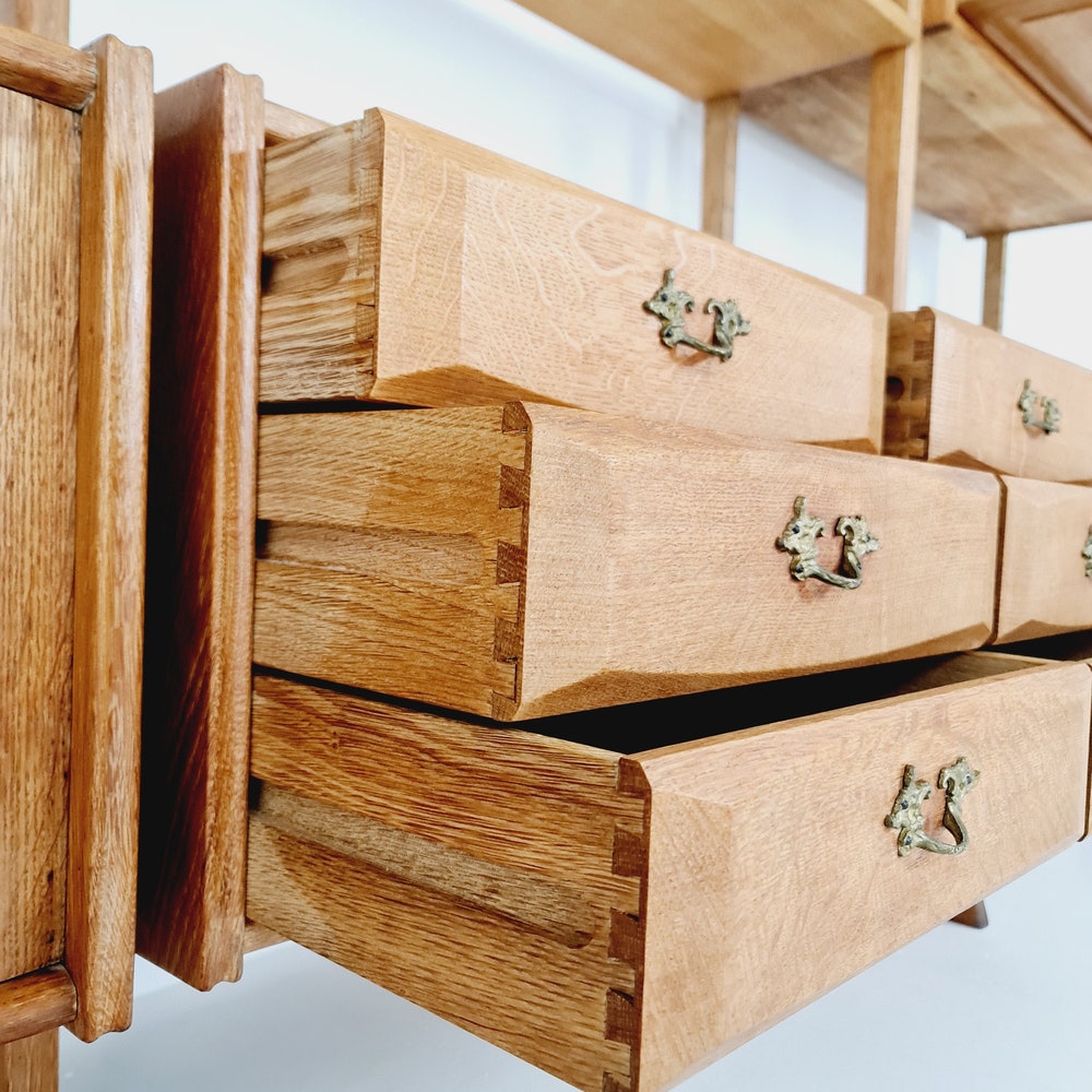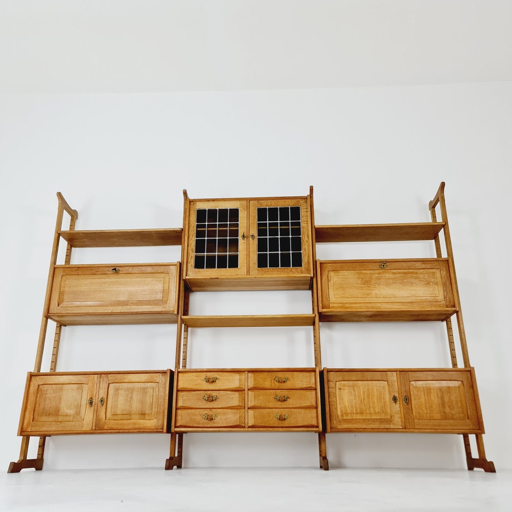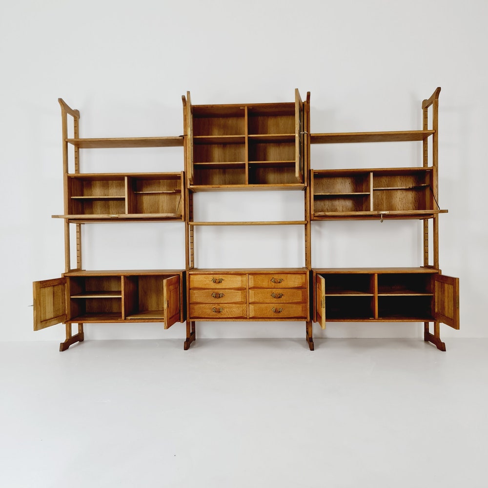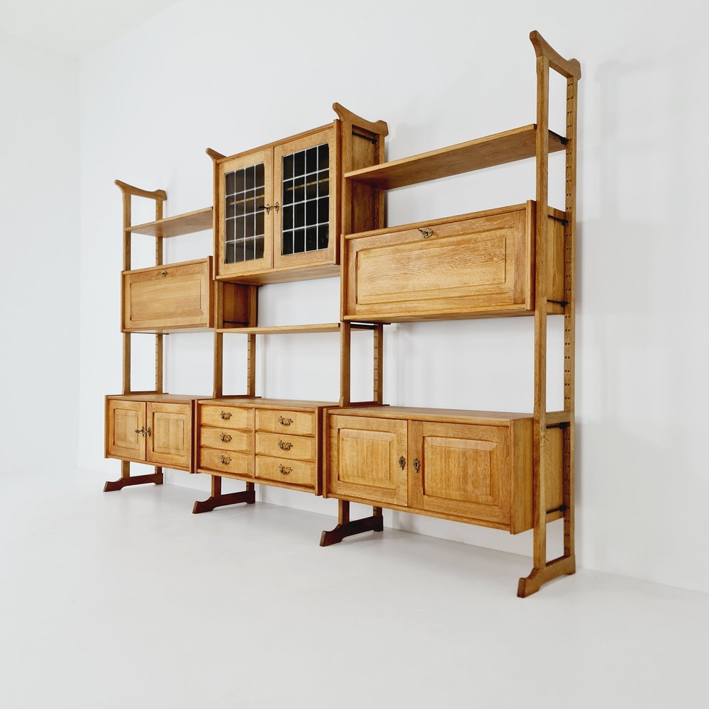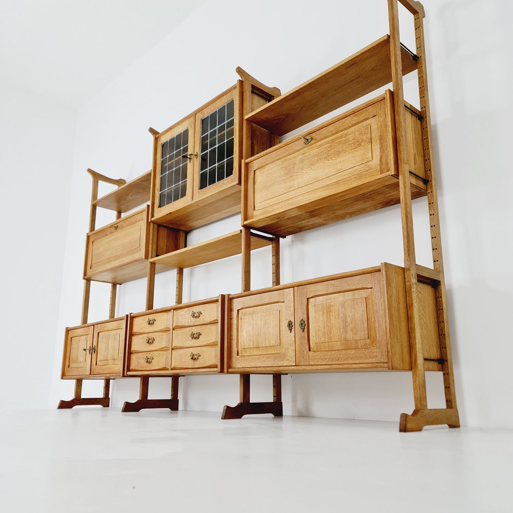 Danish solid oak room divider modular vintage library bookcase shelf-system by Henning Kjærnulf, Denmark, 1960s