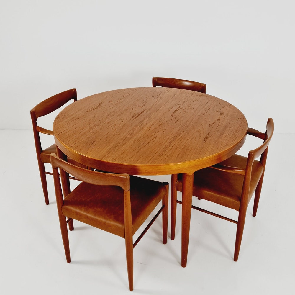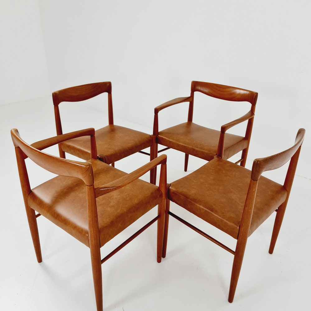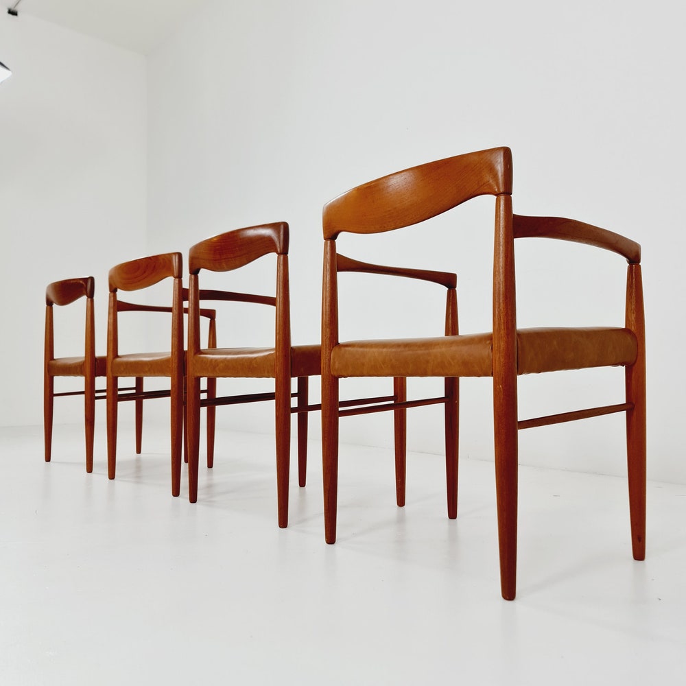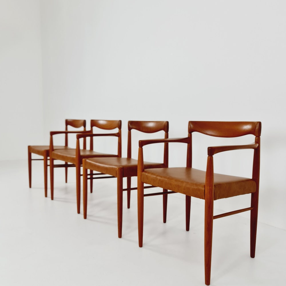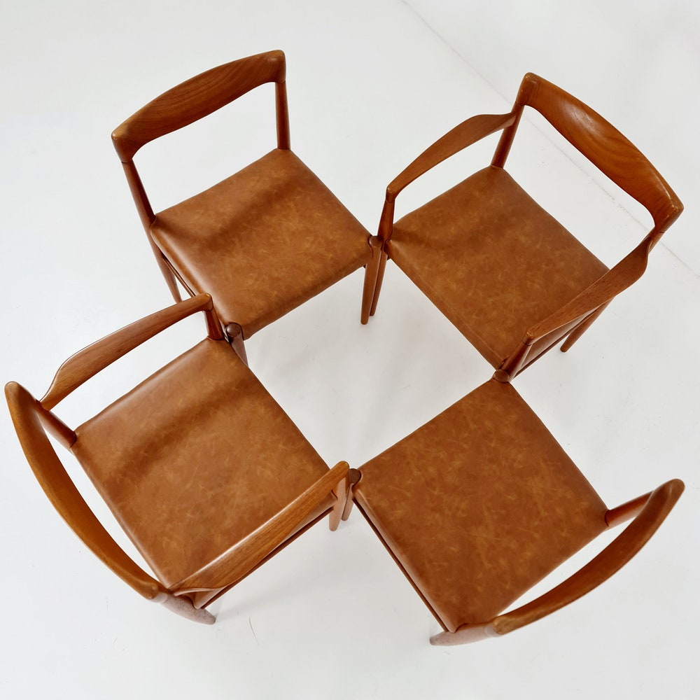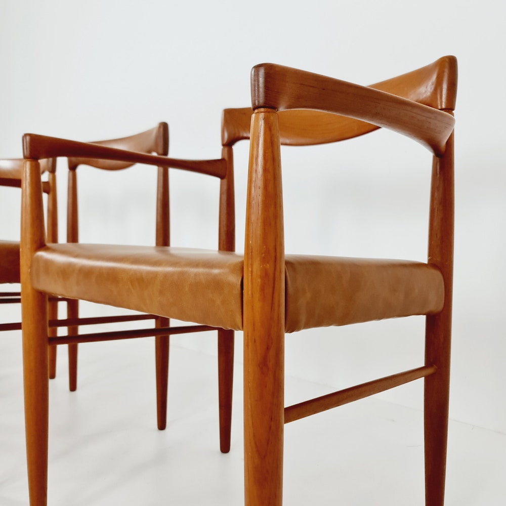 Danish teak & congac faux leather fabric dining chairs by H. W. Klein for Bramin, 1960s, set of 4 The chair frames are made from solid teak and are in great condition. Designer : H.W. Klein for BraminMade in Denmark in the 60s Dimension:Width: 45 cmDepth: 47 cmHeight: 75 cmSeat Height: 44cmArmchair :Width: 59 cmDepth: […]