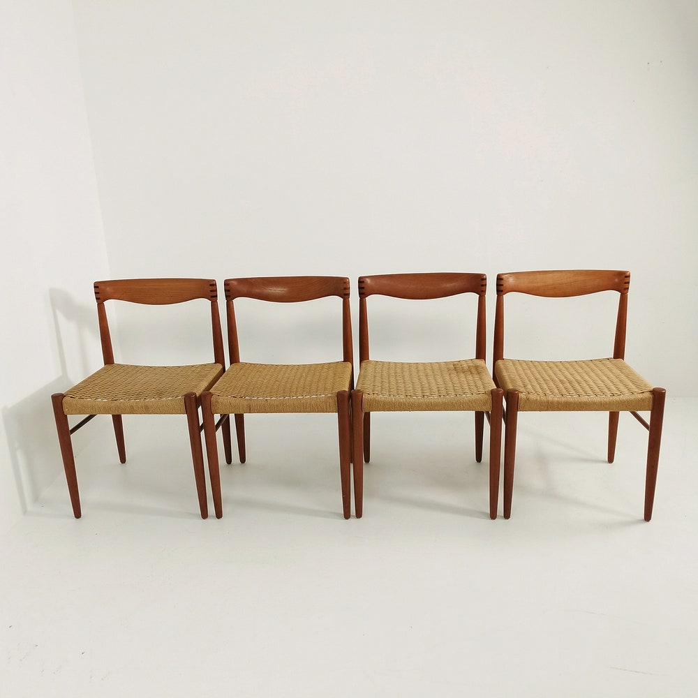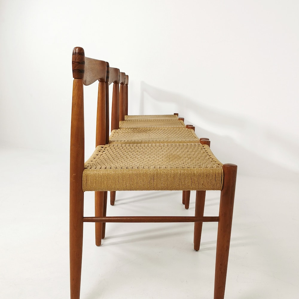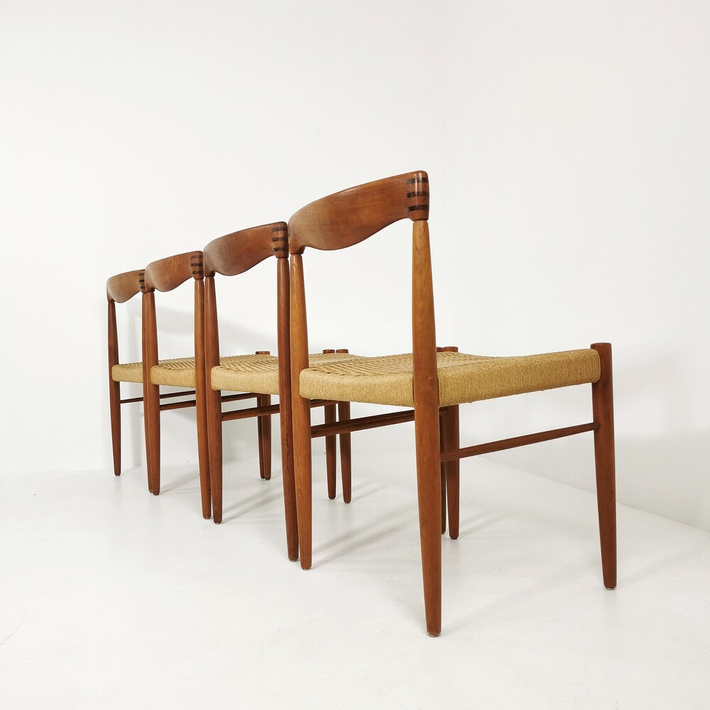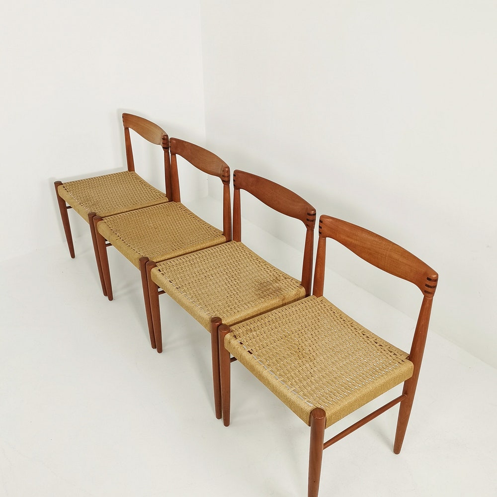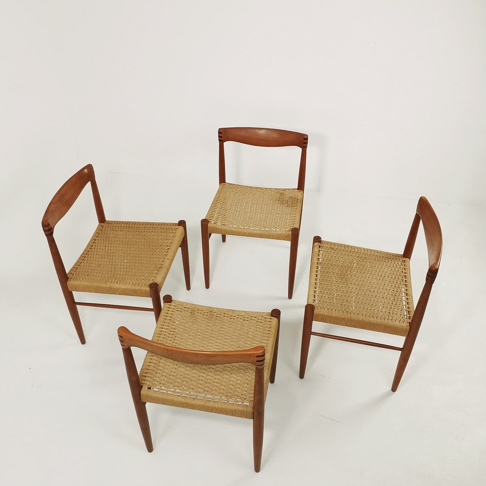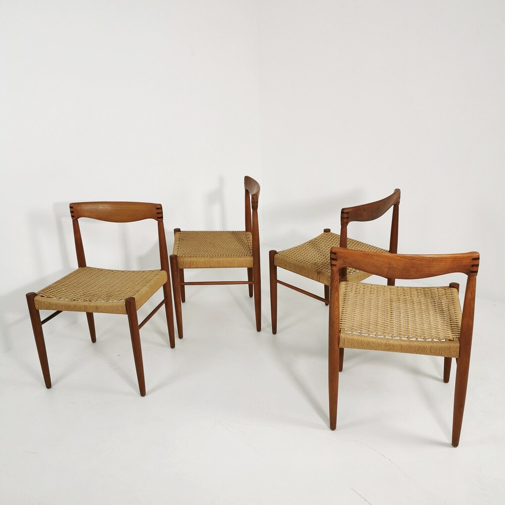 Danish teak & danish cord dining chairs by H. W. Klein for Bramin, 1960s, set of 4 The chair frames are made from solid teak and and are in great condition. 2 of the seats have some minor wears, seen in the pictures. The cord is ordinal, can however be changed. Designer : H. W. […]