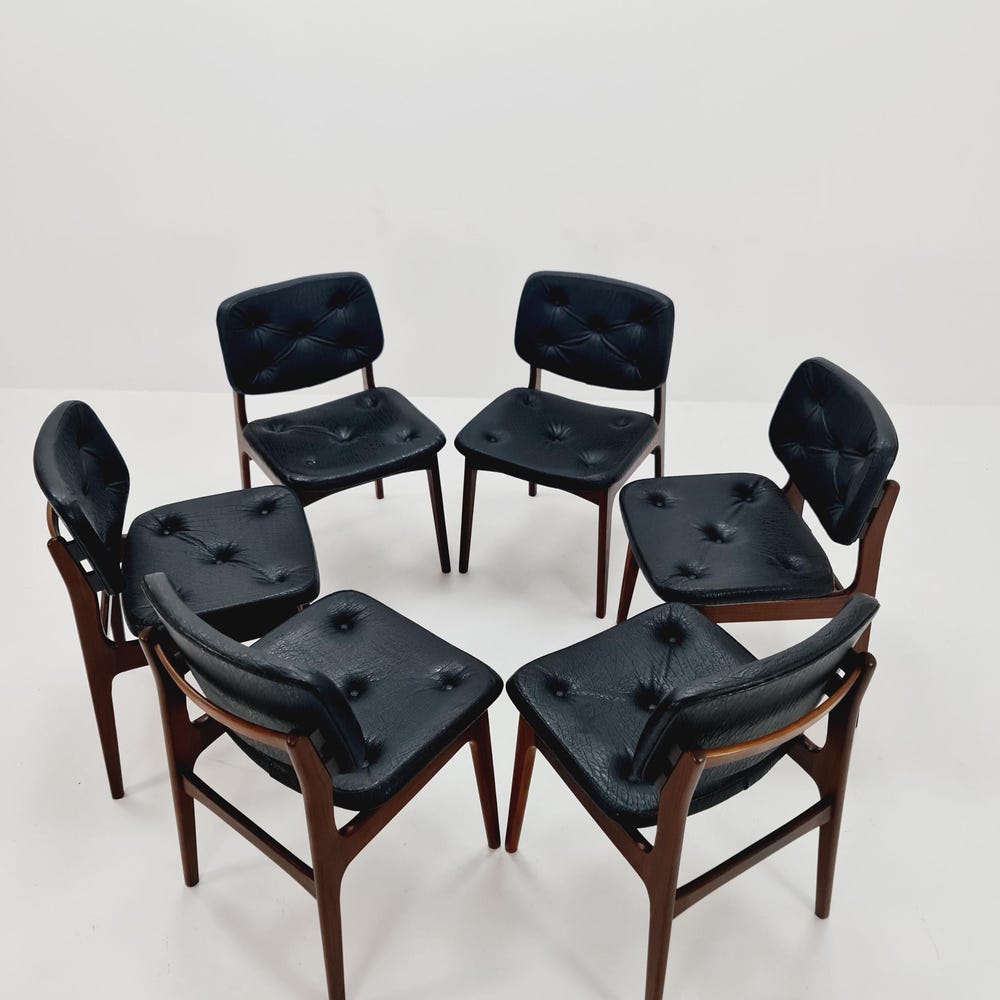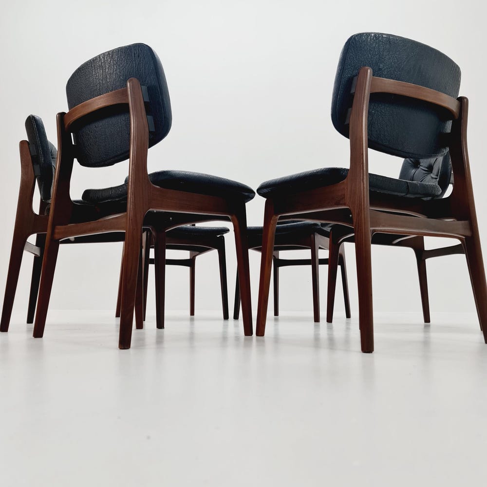 Danish teak dining chairs 1960s, set of 6 The chair frames are made from solid teak and are in good condition. Made in Denmark in the 60s Dimensions: Width: 52 cmDepth: 48 cmHeight: 81 cmSeat Height: 46 cm Please enquire for prices in your country before buying. A wooden crate may be used for intercontinental […]