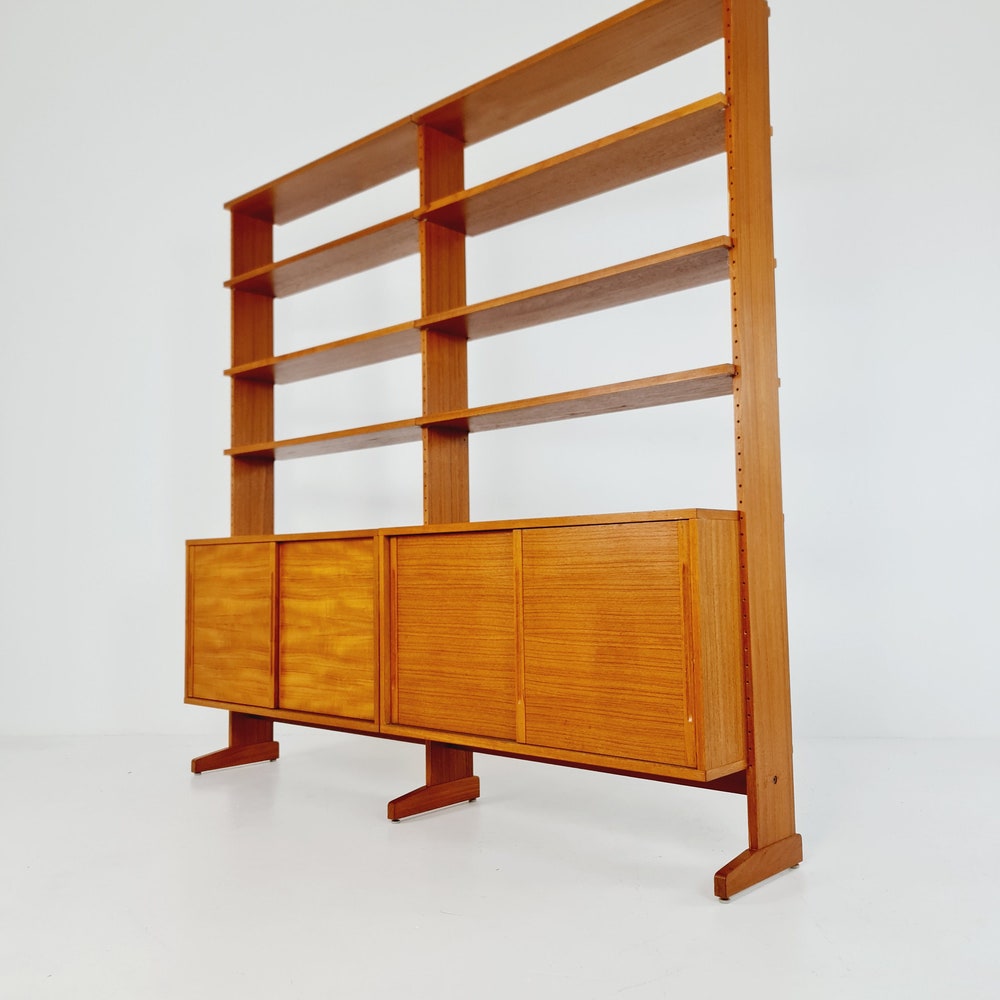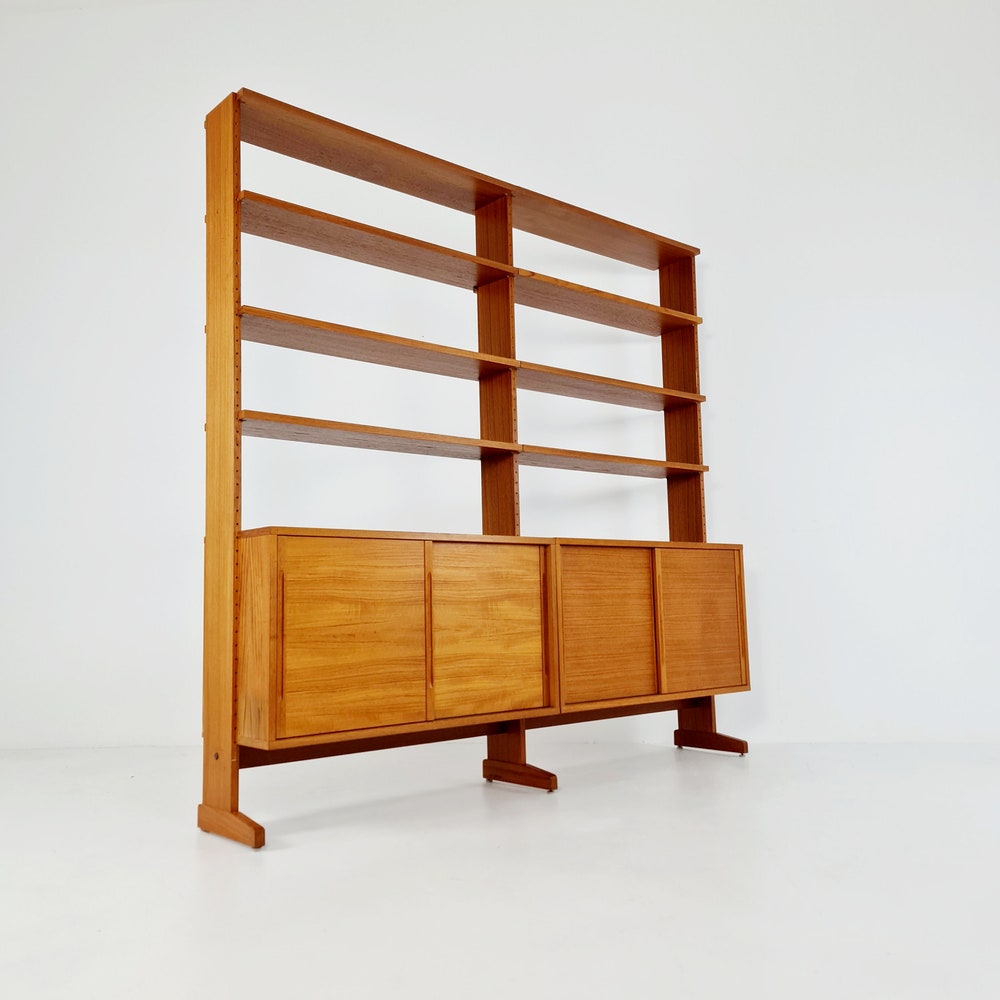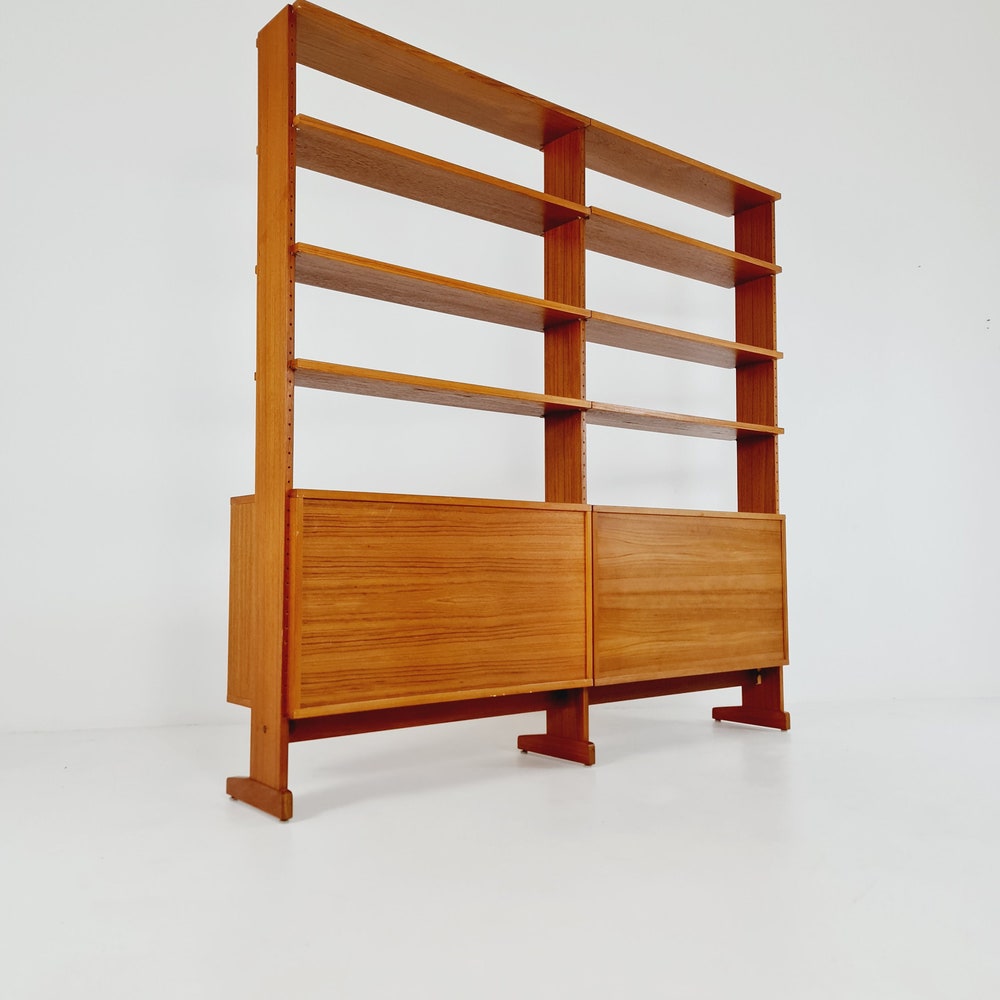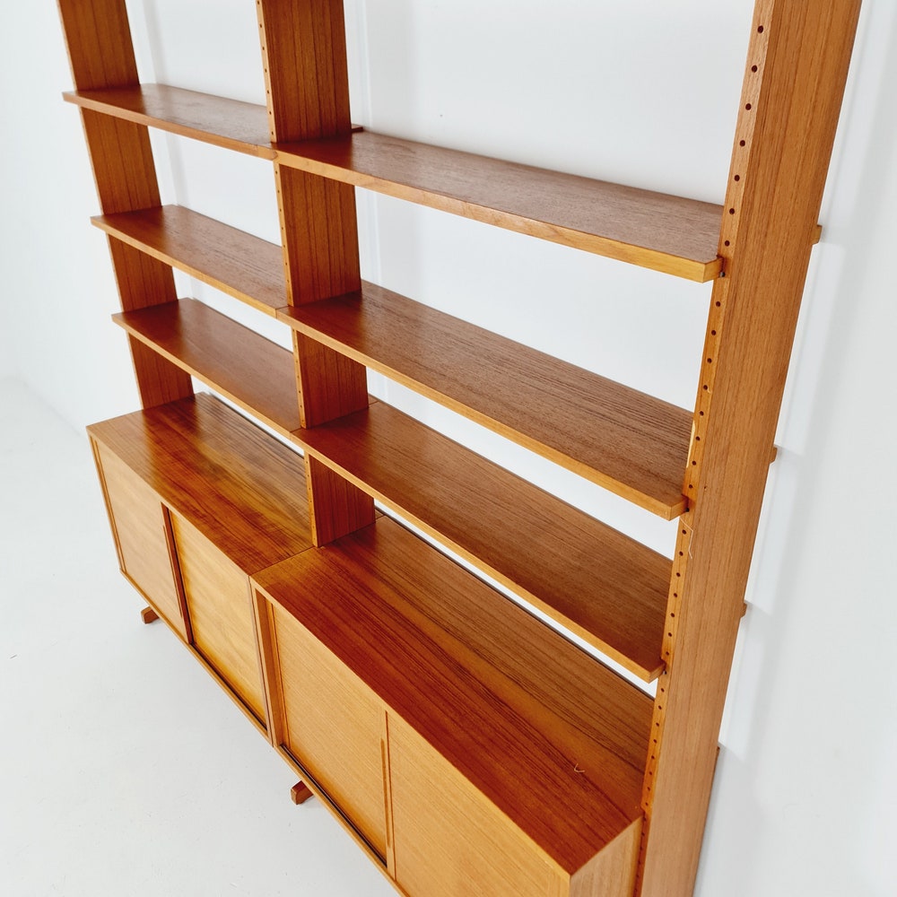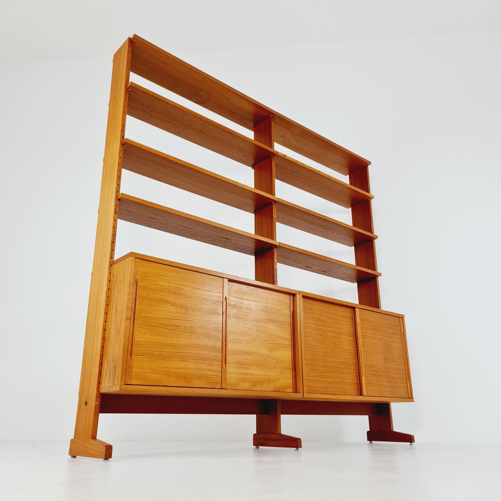 Danish teak room divider modular vintage library bookcase shelf system by L Chr Larsen & Søn, 1960s