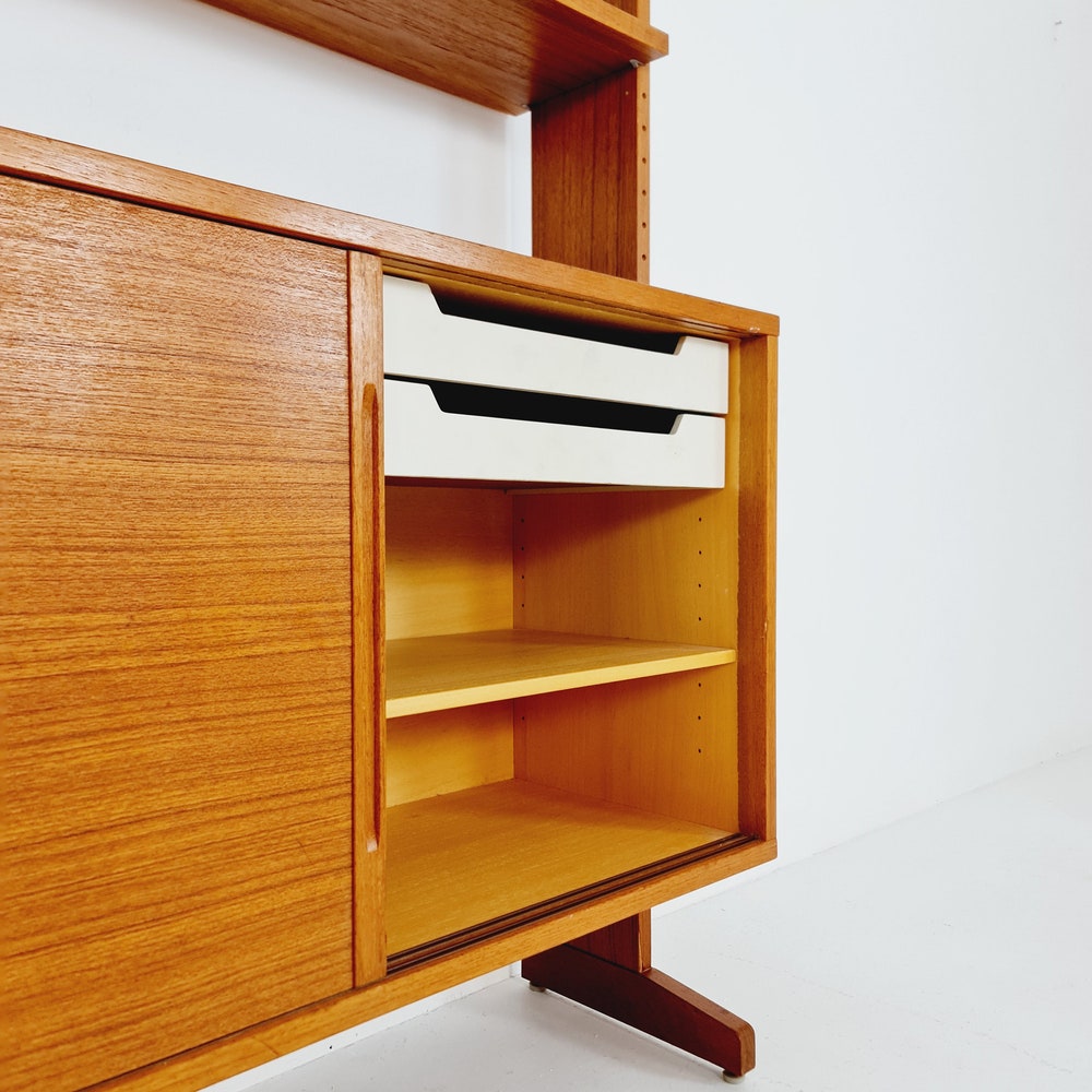 Danish teak room divider vintage library bookcase Modular shelf system by L Chr Larsen & Søn, 1960s Bookcase – Mobile Bar composed of three modules joined together. Genuine vintage 60s. In the lower part there are respectively on the sides three storage compartments with sliding doors. Design : Danish by L Chr Larsen & Son […]