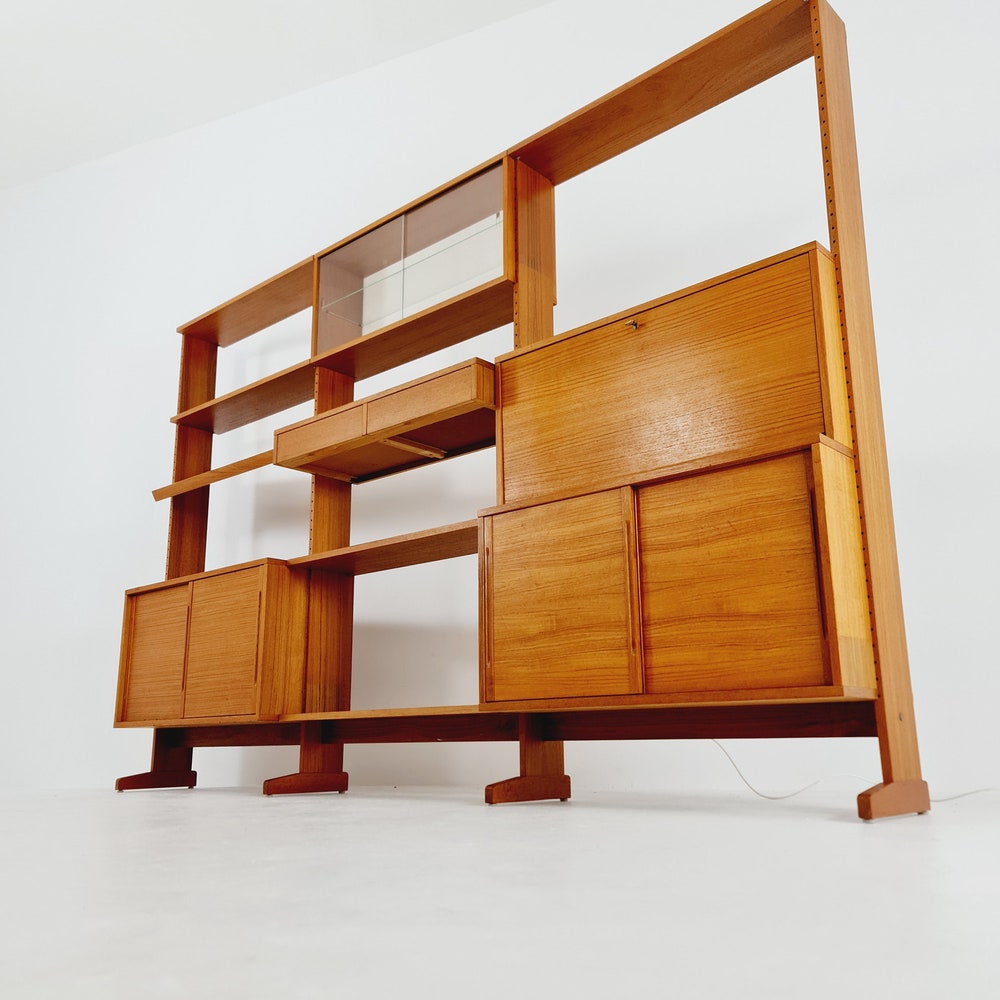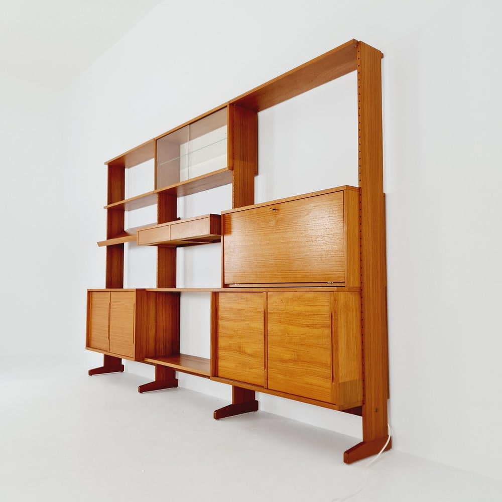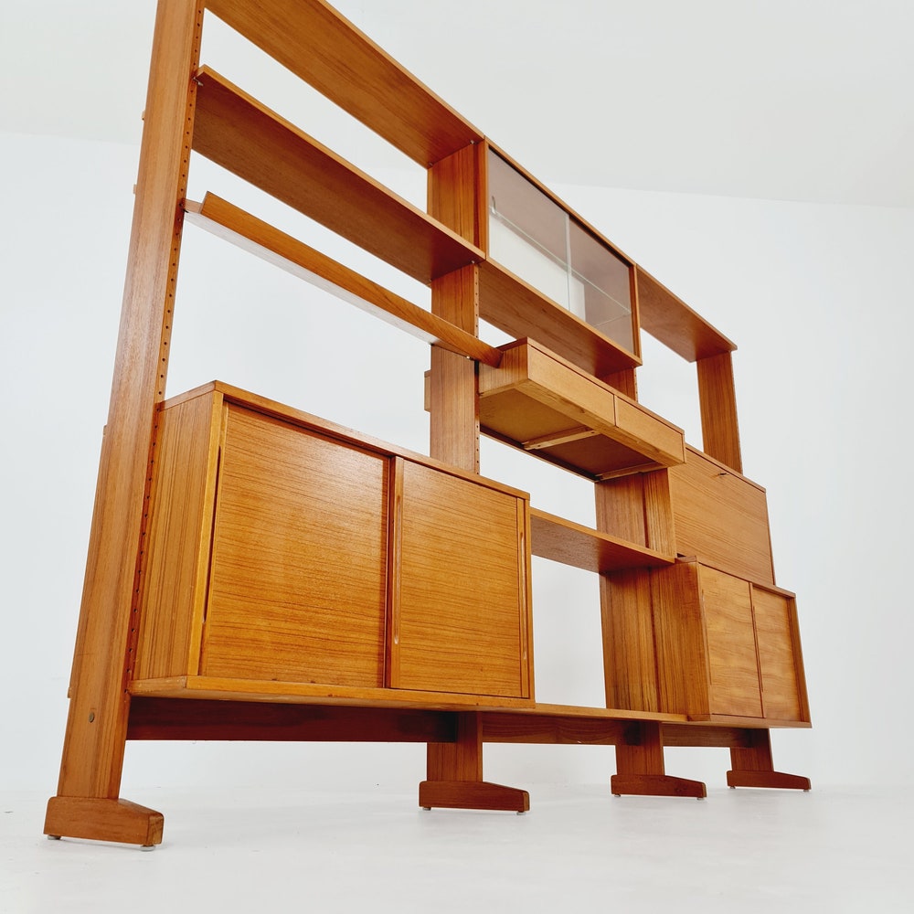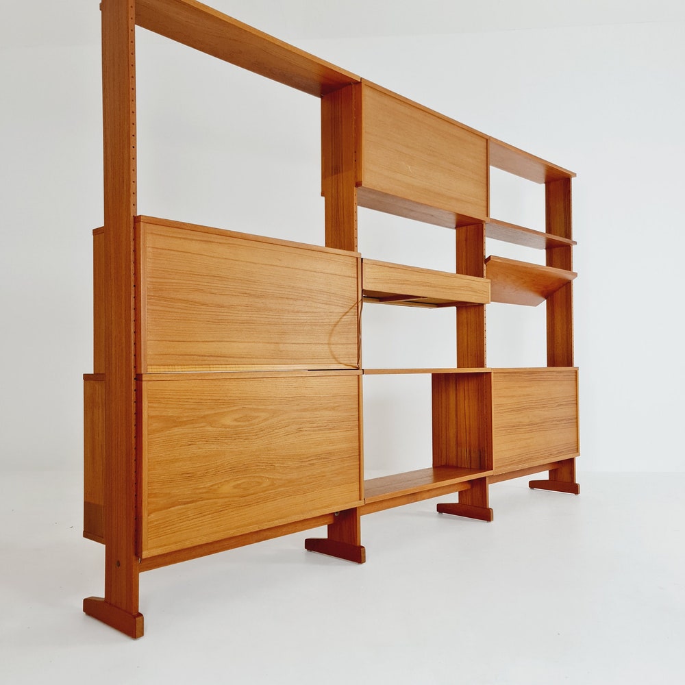 Danish teak room divider modular vintage library bookcase shelf system by L Chr Larsen & Søn, 1960s
