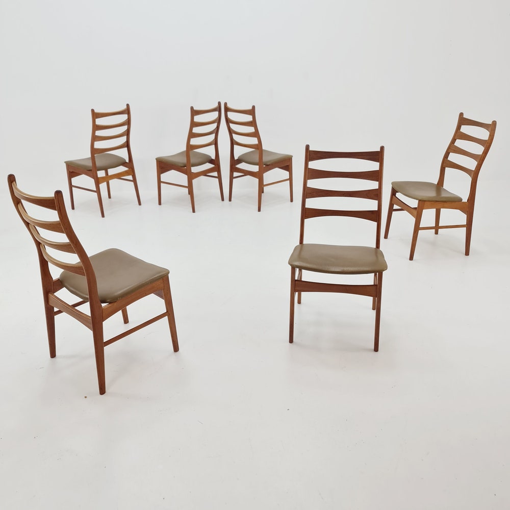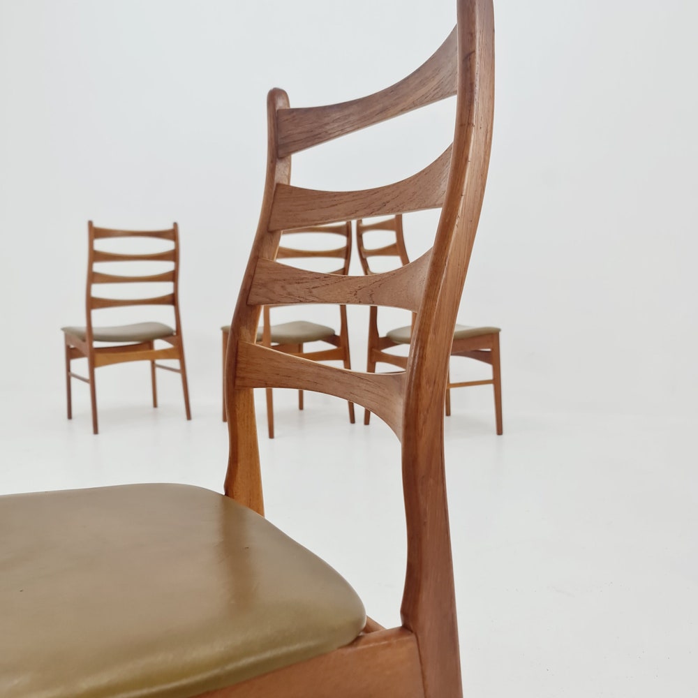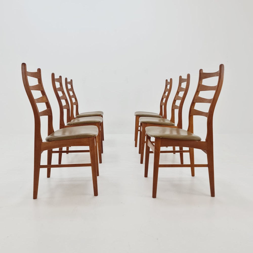 Danish teak with leather seats dining chairs by Viborg stolfabrik 1960s, set of 6