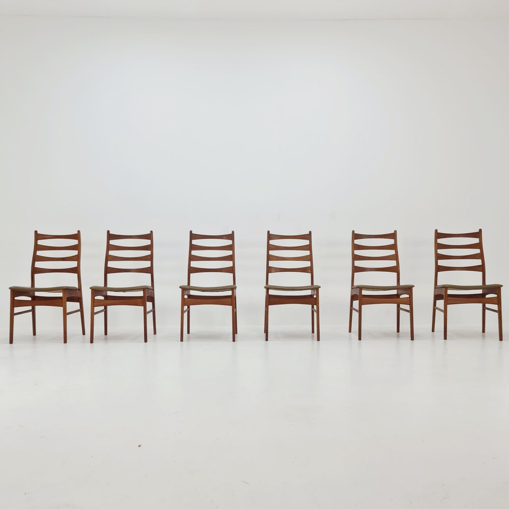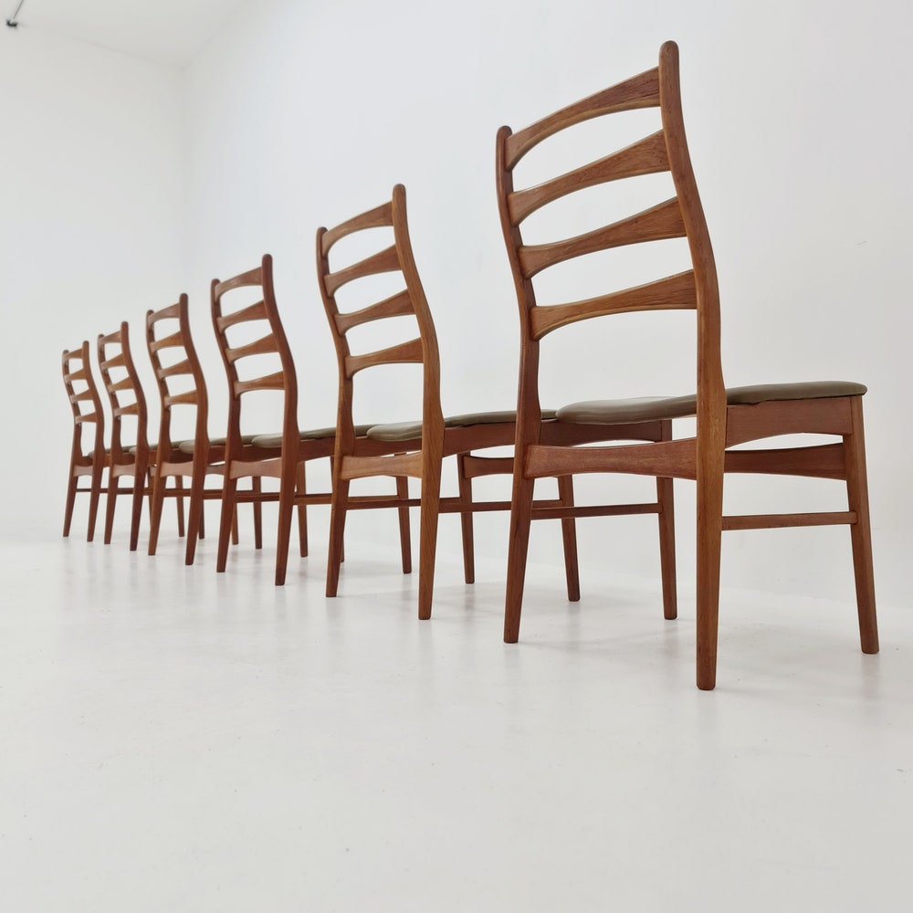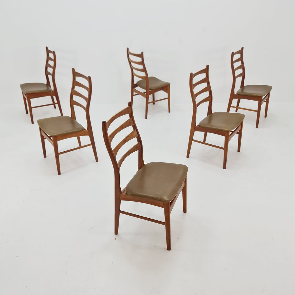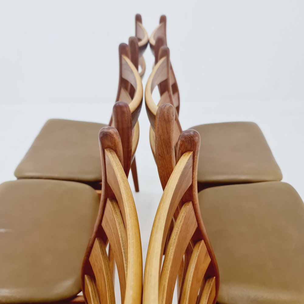 Danish teak with leather seats dining chairs by Viborg stolfabrik 1960s, set of 6