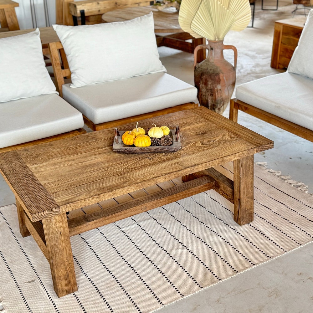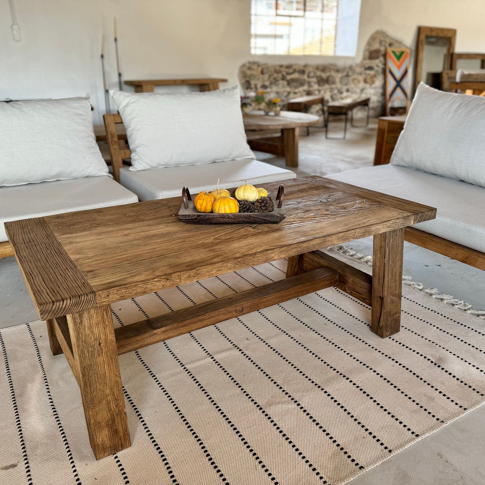 The Rustic Coffee Table in the photos measures 48″ in width, 22″ in depth, and 16″ in height, but we understand that every home is unique. That’s why we offer alternative sizes and even Custom Coffee Table options. Whether you need a smaller or larger table, or a different design, we’re here to create the perfect piece for your home. Just let us know your preferences, and we’ll make it happen—free of charge!