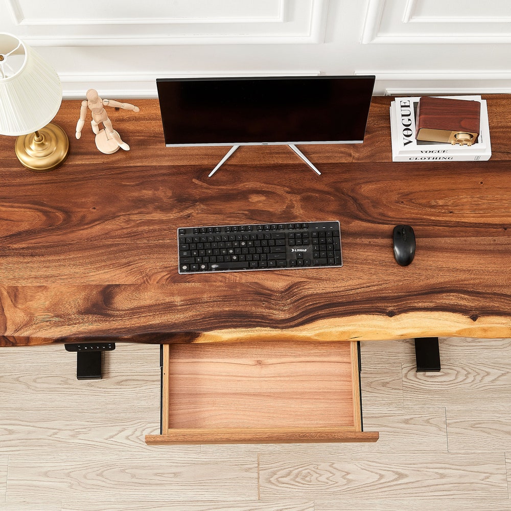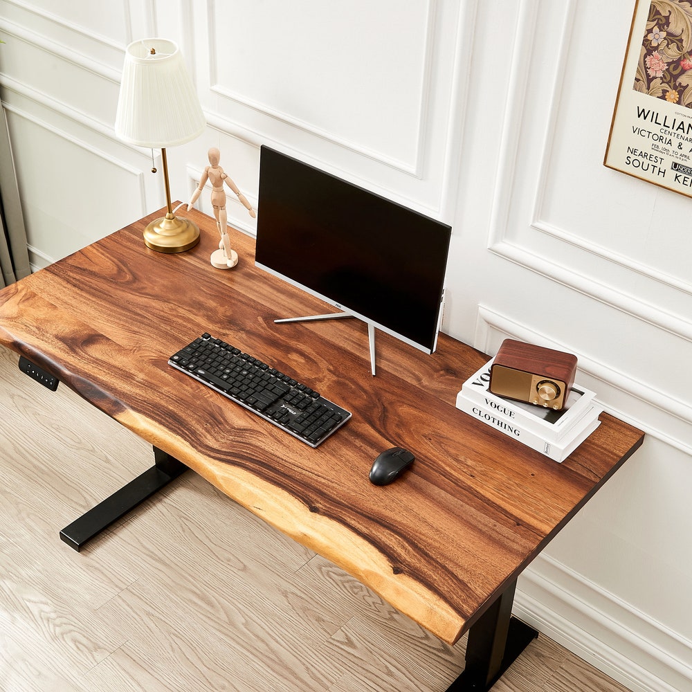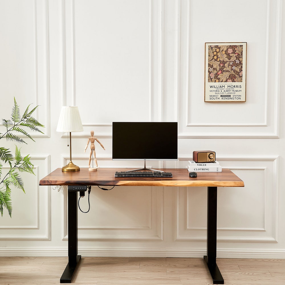 Desk – Black Frame, Standing Desk, Desk, South American Walnut, Stand-Up Desk, Live Edge Desk, Adjustable Standing Desk, Desk with Storage