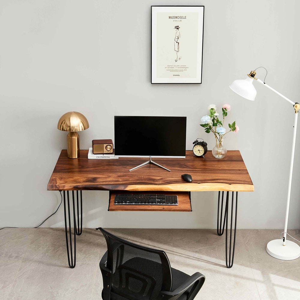 Desk – Hairpin Legs, Live Edge Desk, Wood Desk, South American Walnut, Desk with Storage, Office Desk, Modern Desk, Computer Desk, Modern