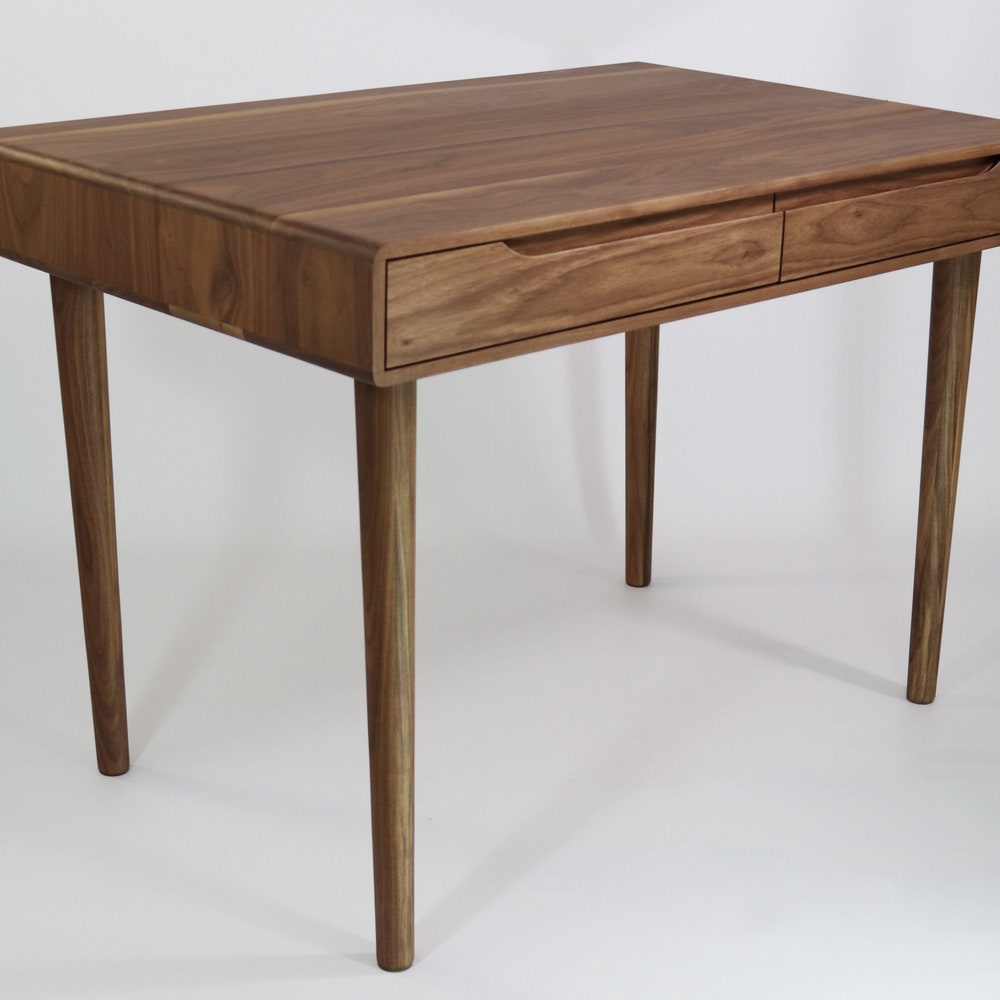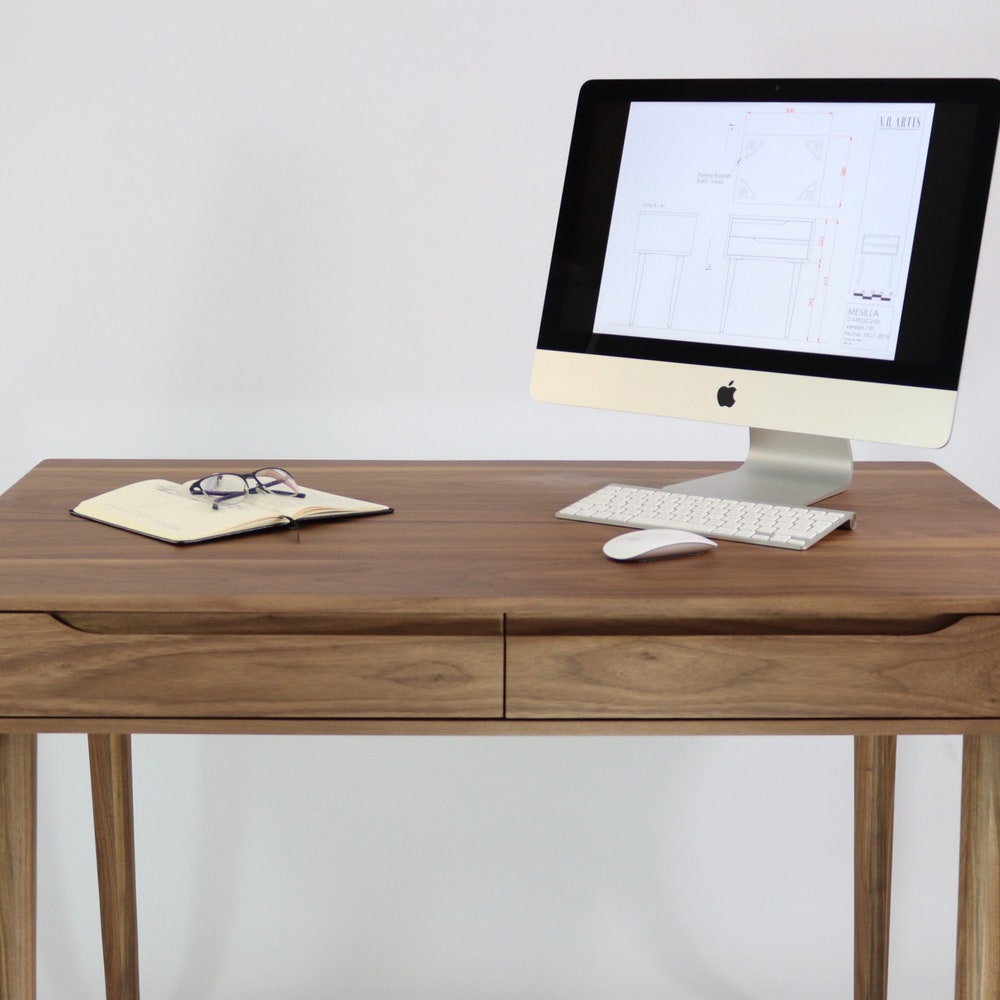 American Walnut Wooden Desk, Minimalist Computer Desk, Office Desk with Cable Organizer & Headphone Holder, Personalized Gift