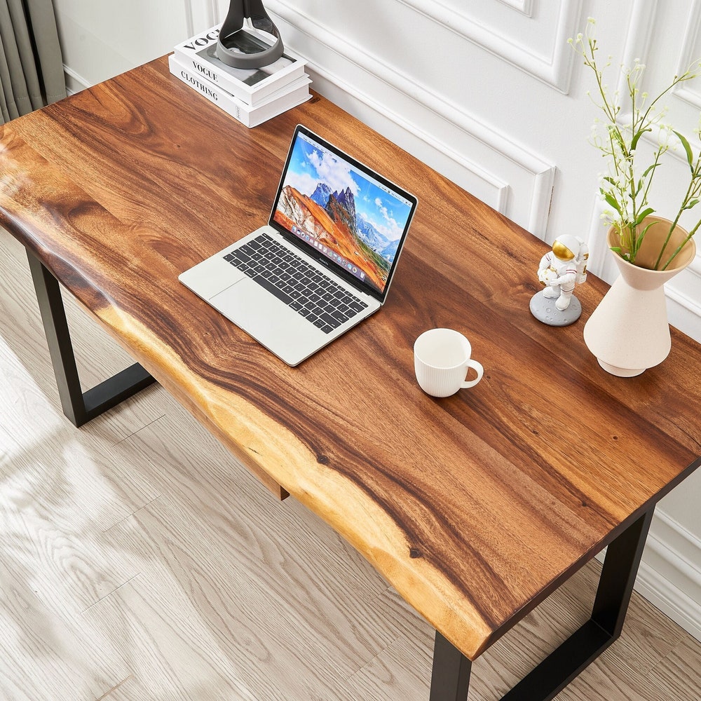 Desk – U Shaped Legs, Live Edge Desk, Wood Desk, South American Walnut, Modern Desk, Office Desk, Desk with Storage, Computer Desk