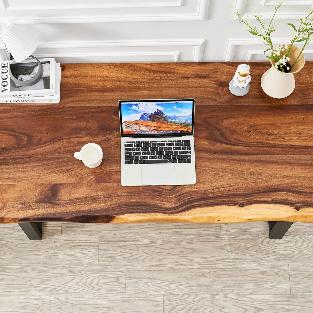 When modern meets industrial, this live edge office desk looks stunning in any room. Its modern-industrial design is made to last with premium South American walnut (Samanea saman) and a zero VOC (non-toxic) topcoat with the hardness and durability of a traditional lacquer or polyurethane. Our eco-friendly and sustainable walnut comes from managed forests that are in compliance with environmental law.