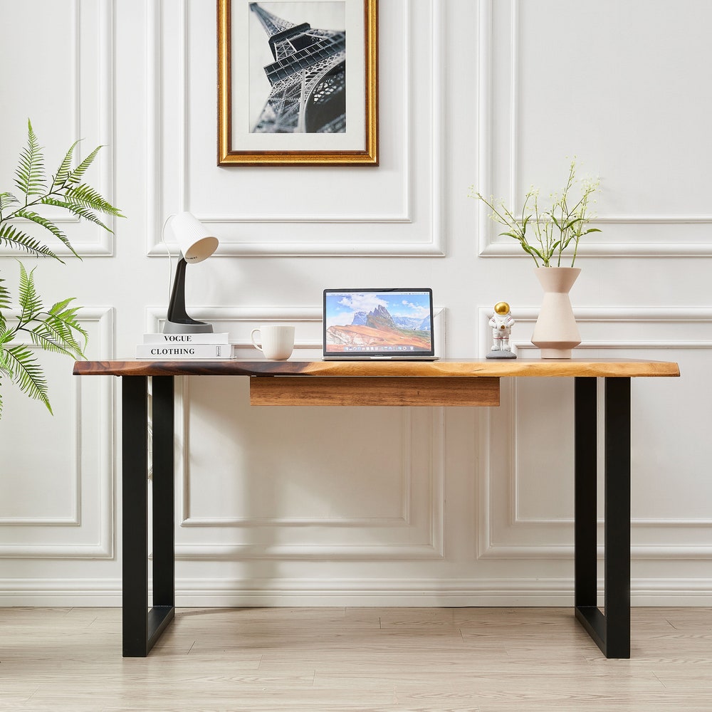 Desk – U Shaped Legs, Live Edge Desk, Wood Desk, South American Walnut, Modern Desk, Office Desk, Desk with Storage, Computer Desk
