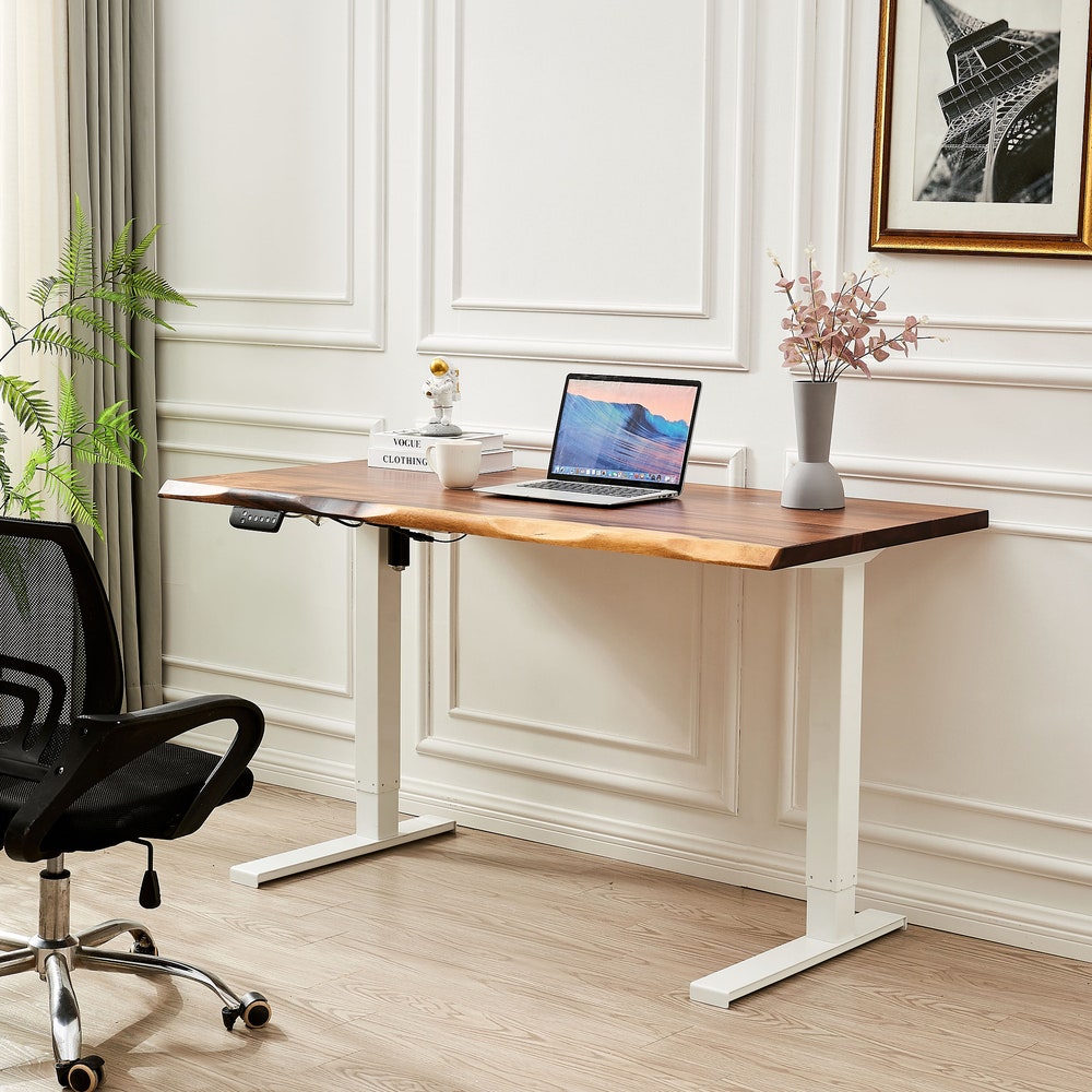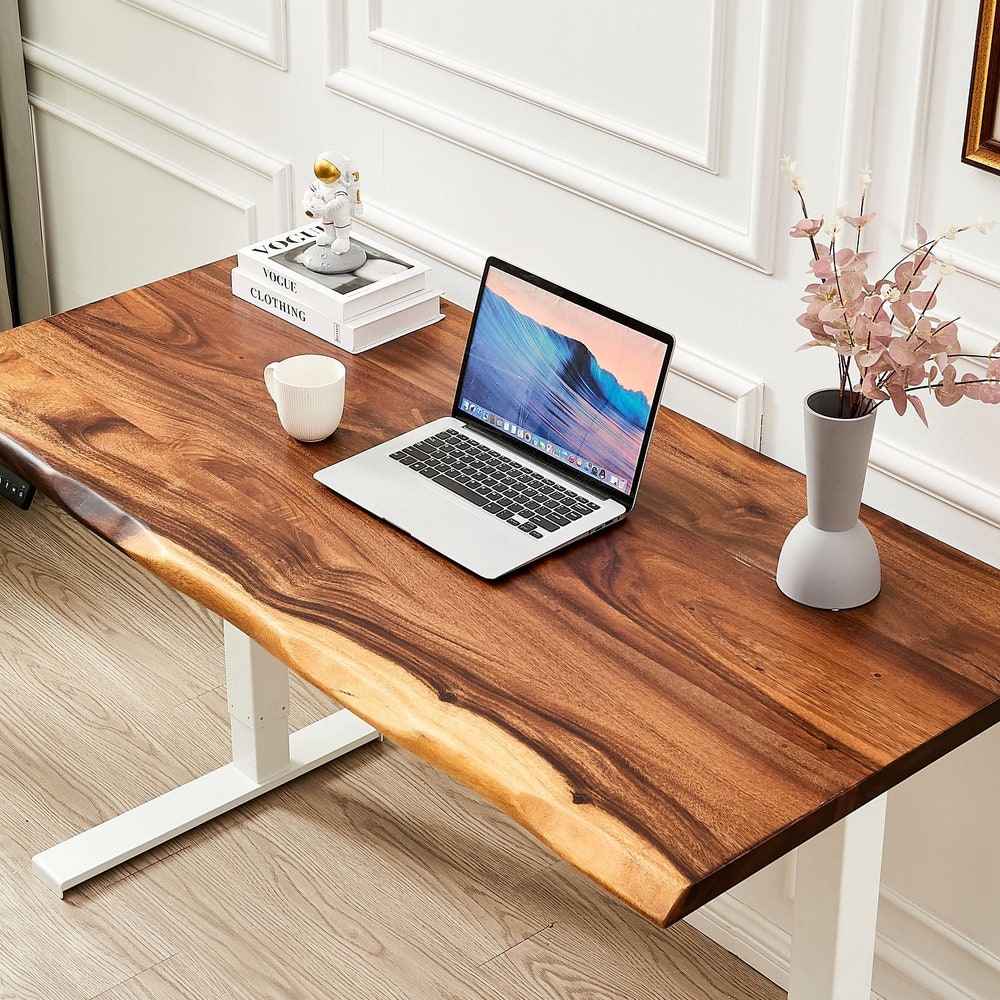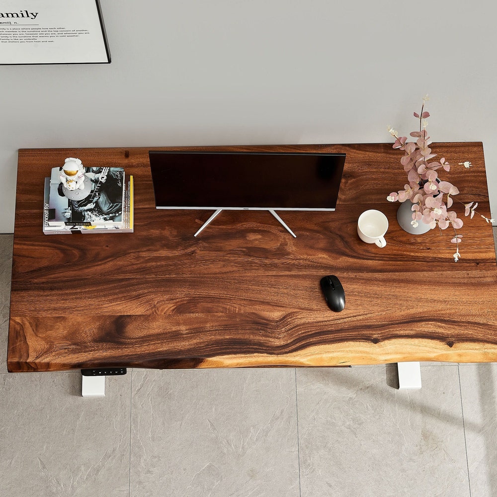 Desk – White Frame, Desk, Standing Desk, South American Walnut, Stand-Up Desk, Live Edge Desk, Adjustable Standing Desk, Desk with Storage