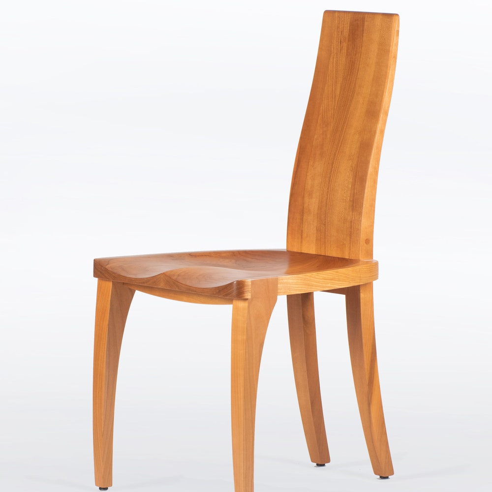 Each chair is meticulously handmade to order, featuring a stylish narrow high back and uniquely curved legs for a streamlined, minimalist and timeless look that will seamlessly work with any decor style.