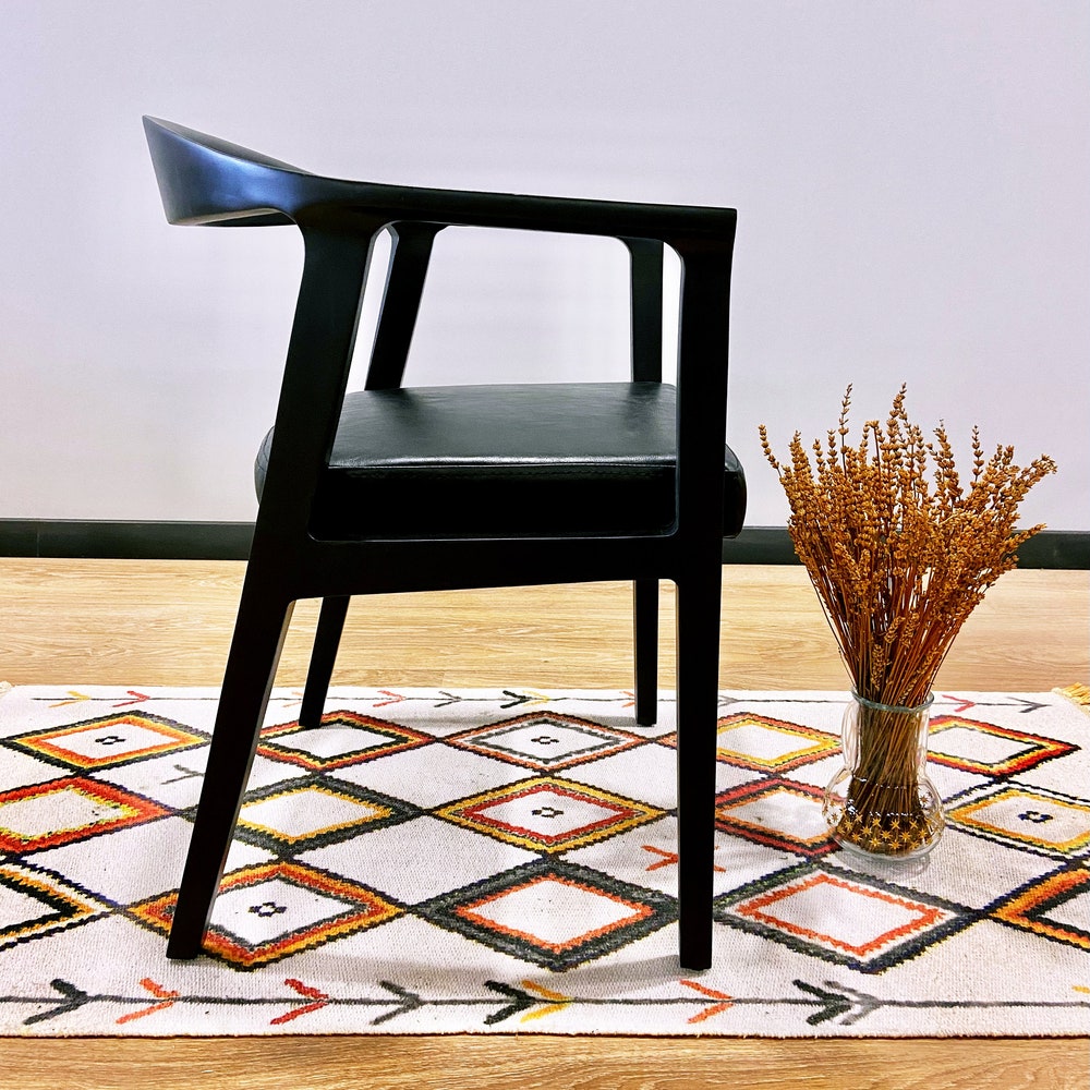 Mid century modern chair with unique design. The frame and cushion of the wooden dining chair are handmade. Made of first-class solid beech wood, this chair is extremely durable and its leather cushion is comfortable. From the catalog in the photos, any of the microfiber and linen fabrics can be preferred instead of the leather fabric. Thanks to this chair design, it adapts to any place you want to use at home. You can customize the color or finish of the chair frame and the fabric of the seat as you wish. If you want the fabric you see on the chair in the photo, please choose “Fabric on the seat” and write the color you want in the personalization bar.