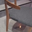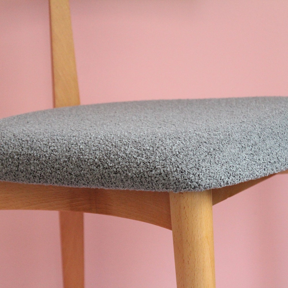 Comfortable and ergonomic dining chair made of light beige soft fabric. Upholstery will be made with care and handcrafted fabric colors.