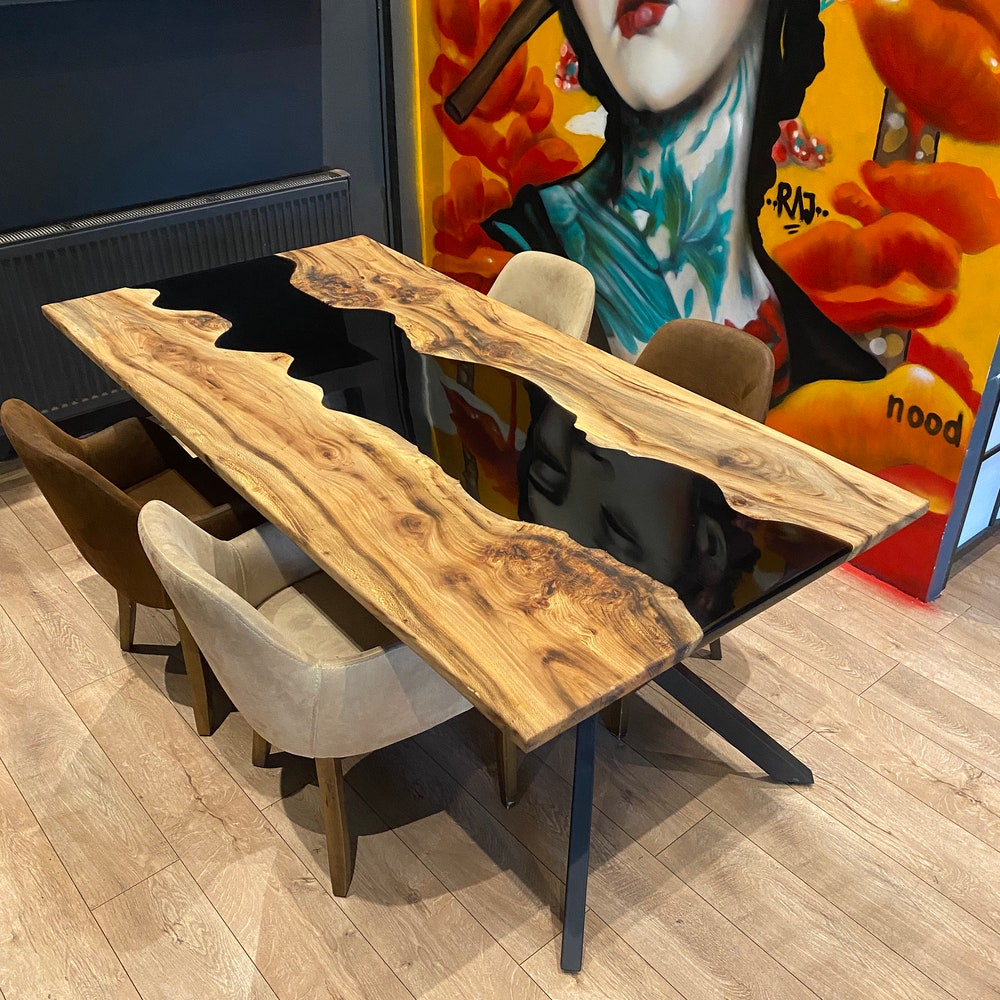 Dining room/kitchen/bar table Wood Epoxy Resin River Unique Live Edge Olive custom reclaimed WoodenSolid slab luxury /coffee/sehpa/end table