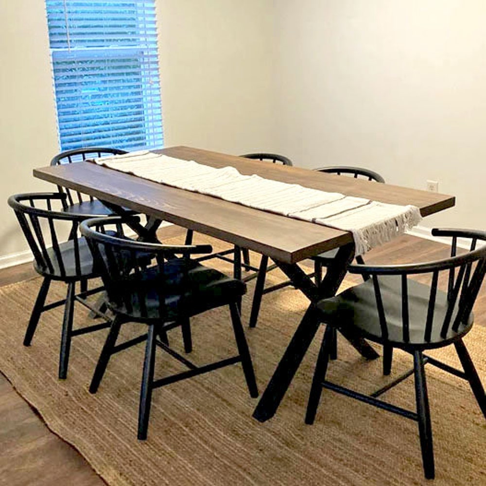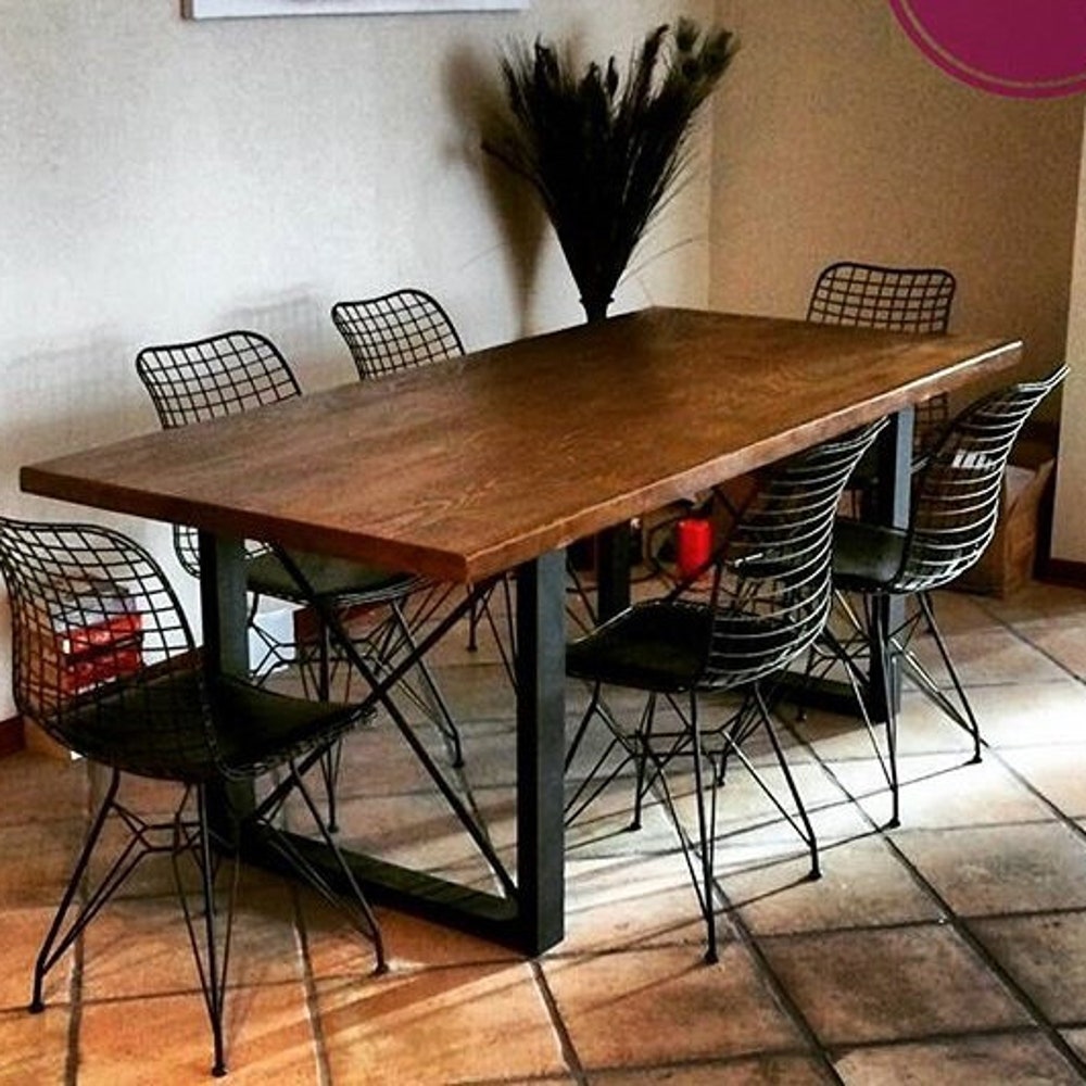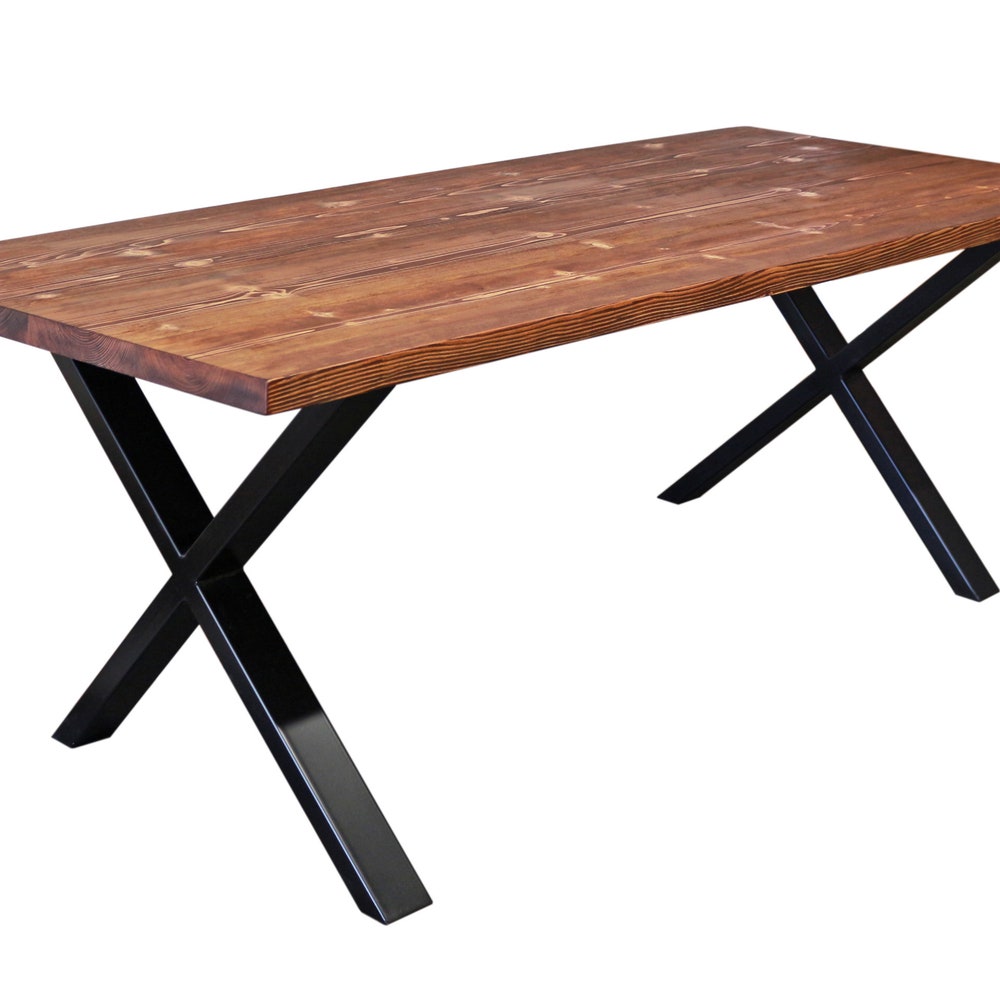 Dining Room Table and Bench with Metal Legs / Solid Wooden Dining Table / Farmhouse Kitchen Table / Rectangle Dining Table