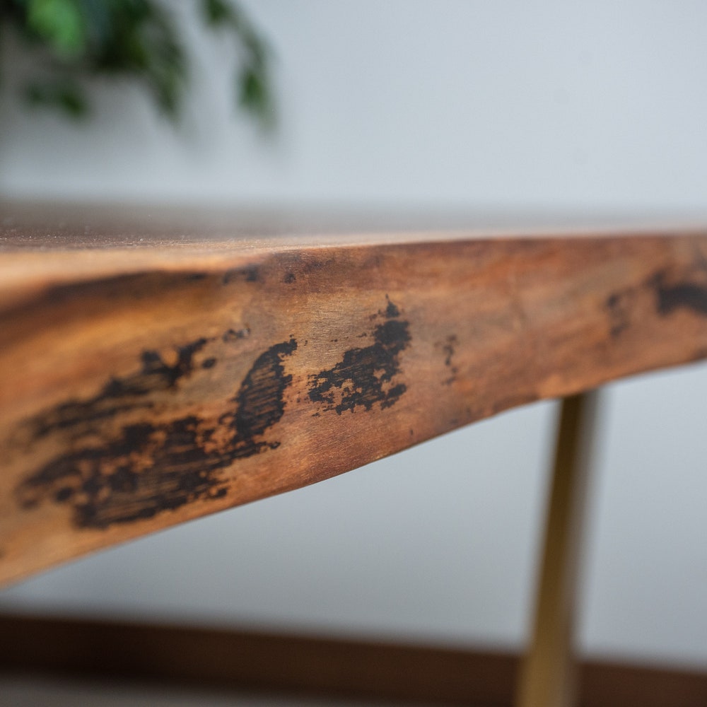 Dining Table Live Edge, Modern Farmhouse Kitchen Table, Rustic Live Edge Walnut Dining Table on Gold Steel Legs, Modern Live Edge Table