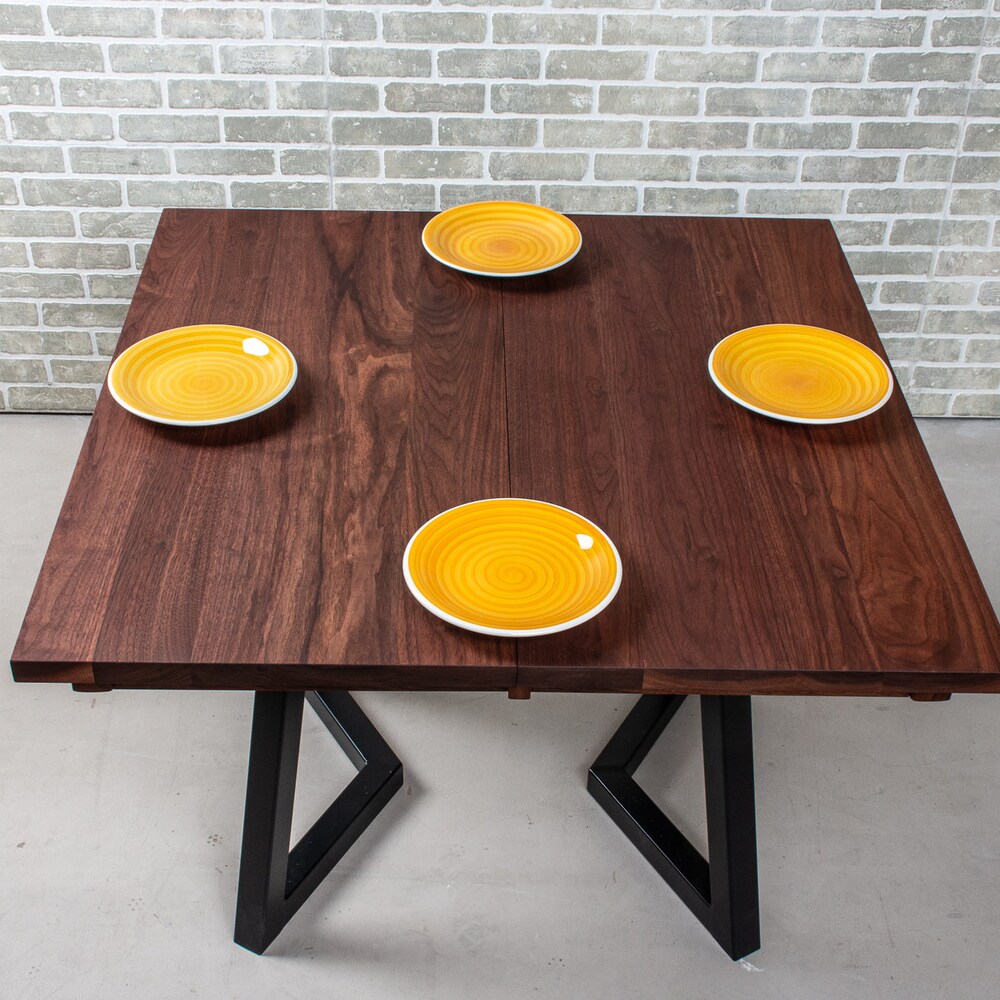 Dining Table Square Extendable, Dining Table with Extenders, Expanding Table in Spiced Walnut, Square Red Toned Wood Dining Table w Leaves
