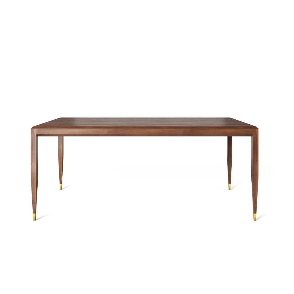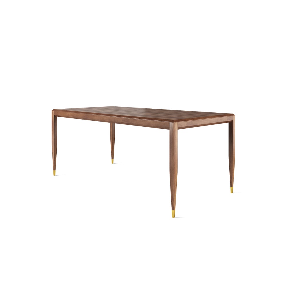 Beautiful dining table in mid century style with tapered legs with brass feets.