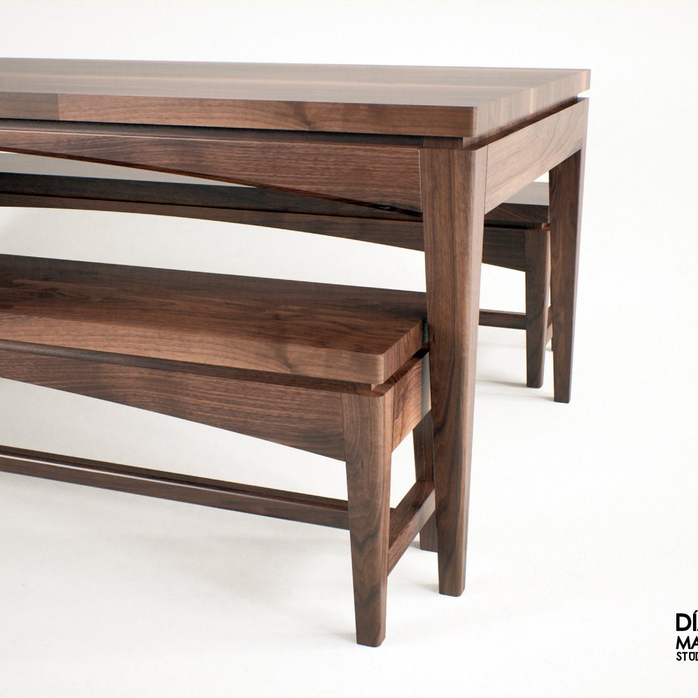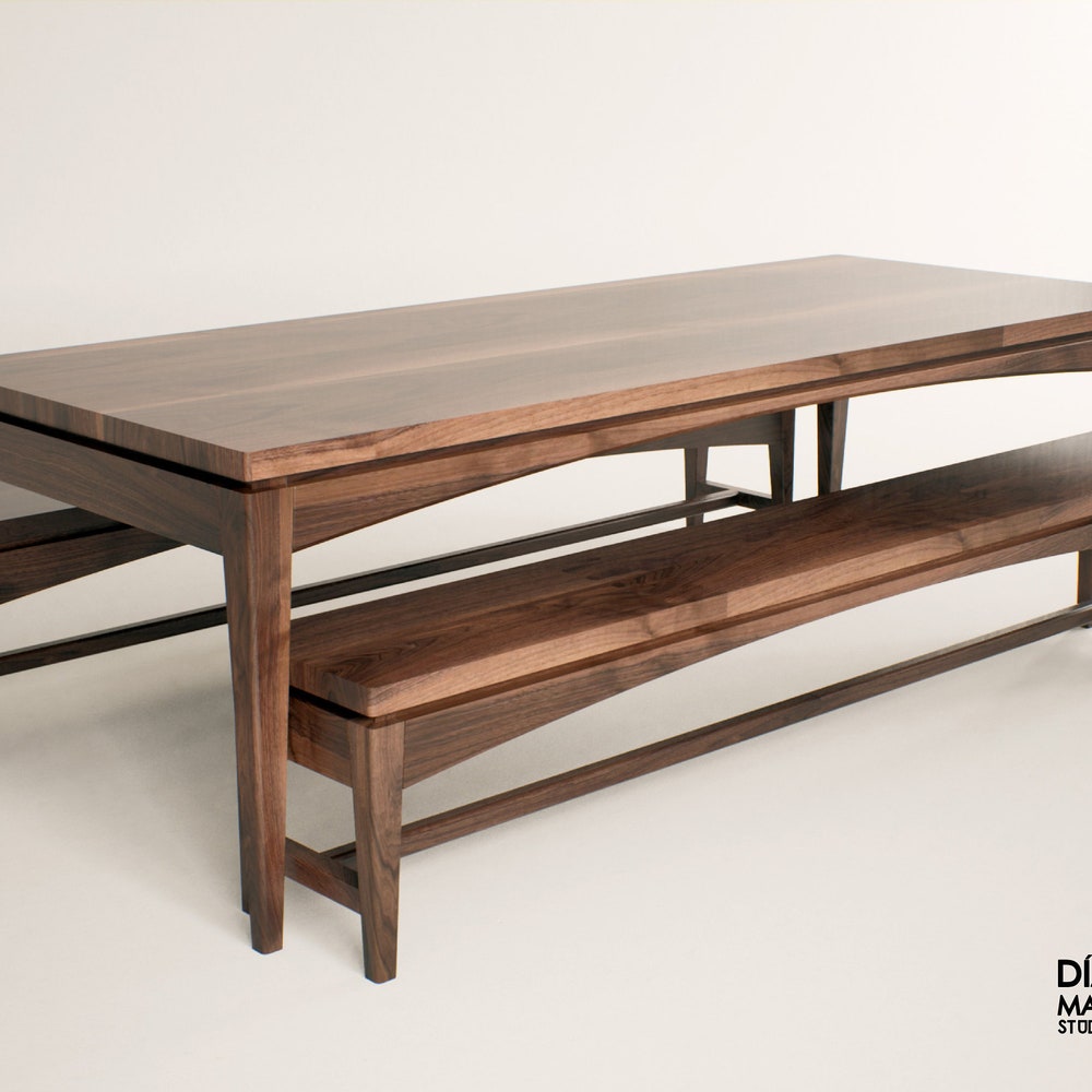 Table set with two benches made of the type of wood you choose (American Walnut, American Oak, Ash, Chesnut & African teak),