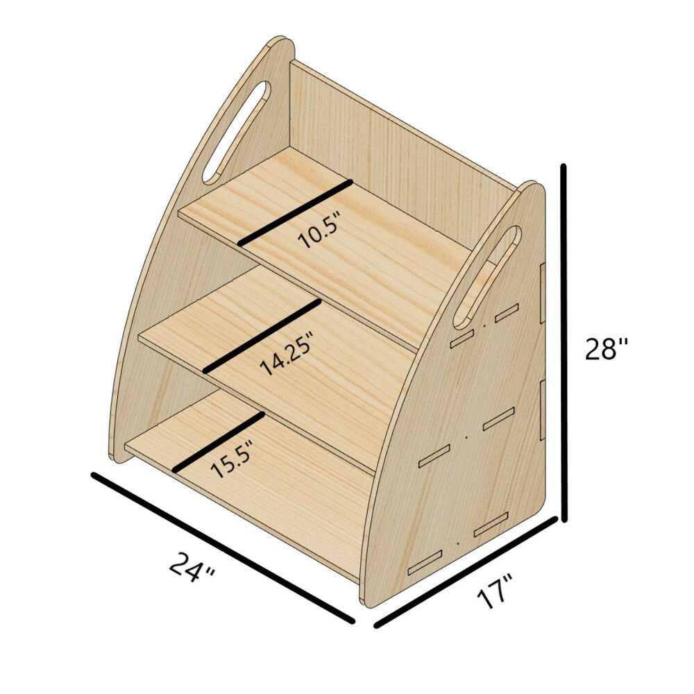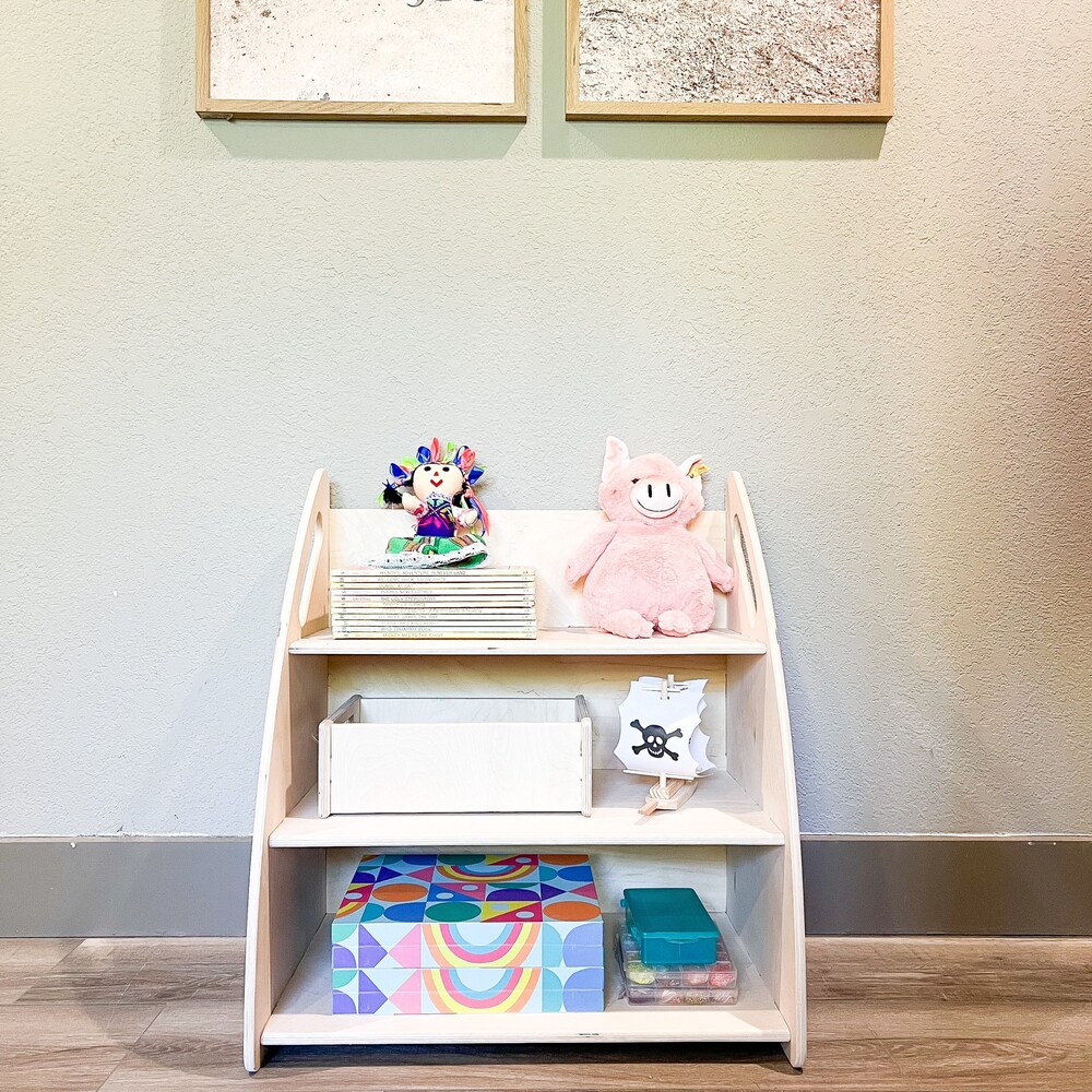Medium 3 Shelf Montessori Toy Shelf with Side Panels that Double as Handles!!