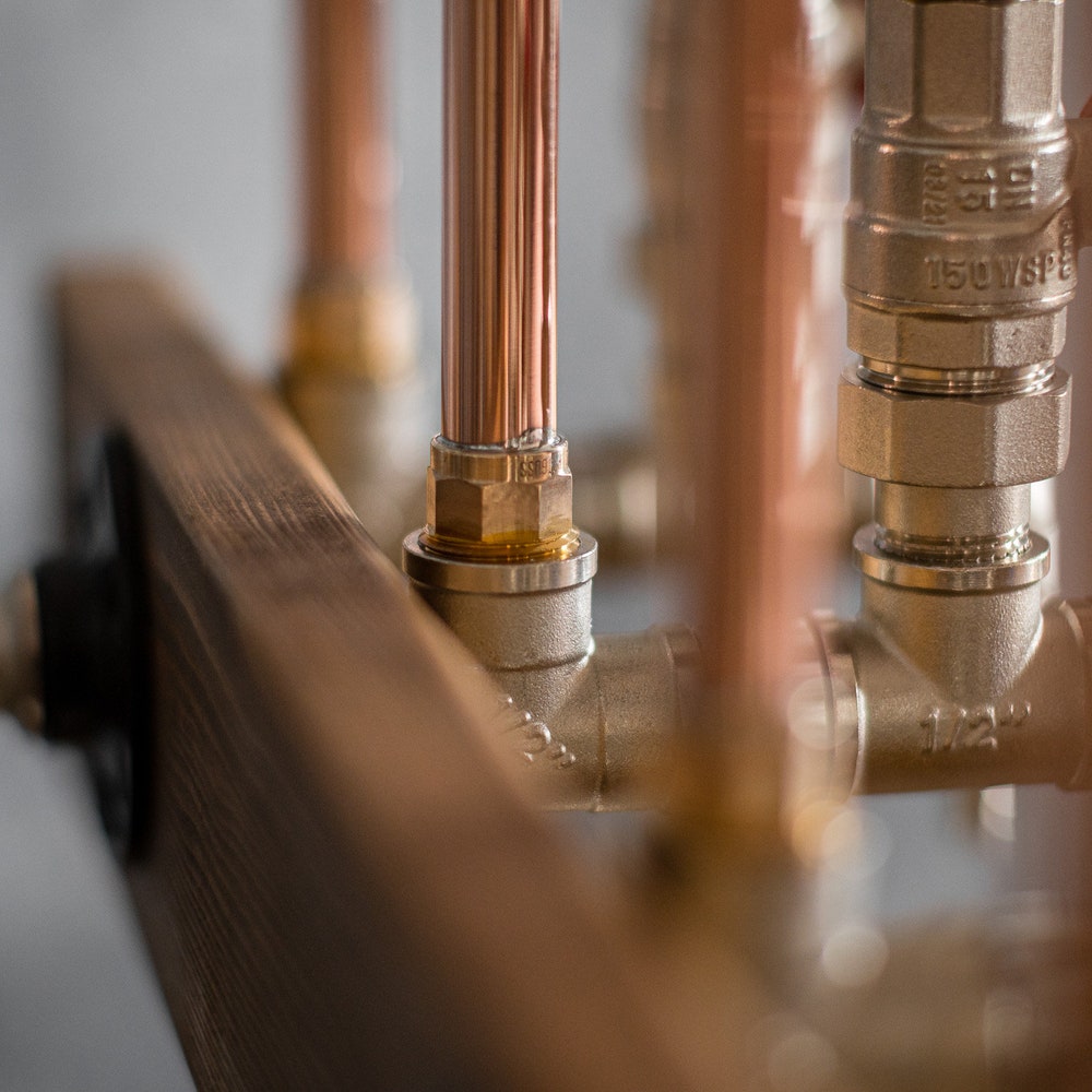 The product is made of plumbing things, which create an interesting vintage industrial look. The dispenser system is built onto a board of wood which is hand stained and varnished.
