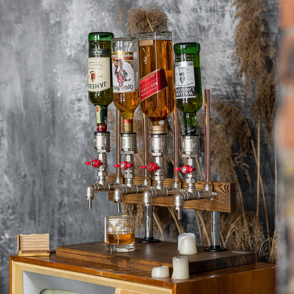 Dispenser for Alcohol – Home Bar Liquor Stand – Unique Gifts for Men – Birthday Bachelor Party Decor- Industrial Kitchen Bar Decor